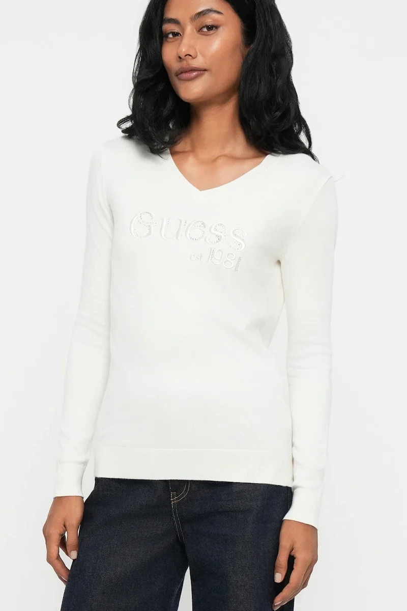"adi_alt": "Guess Saylor Kad\u0131n Beyaz Triko W5BR41Z2NQ2-G012",