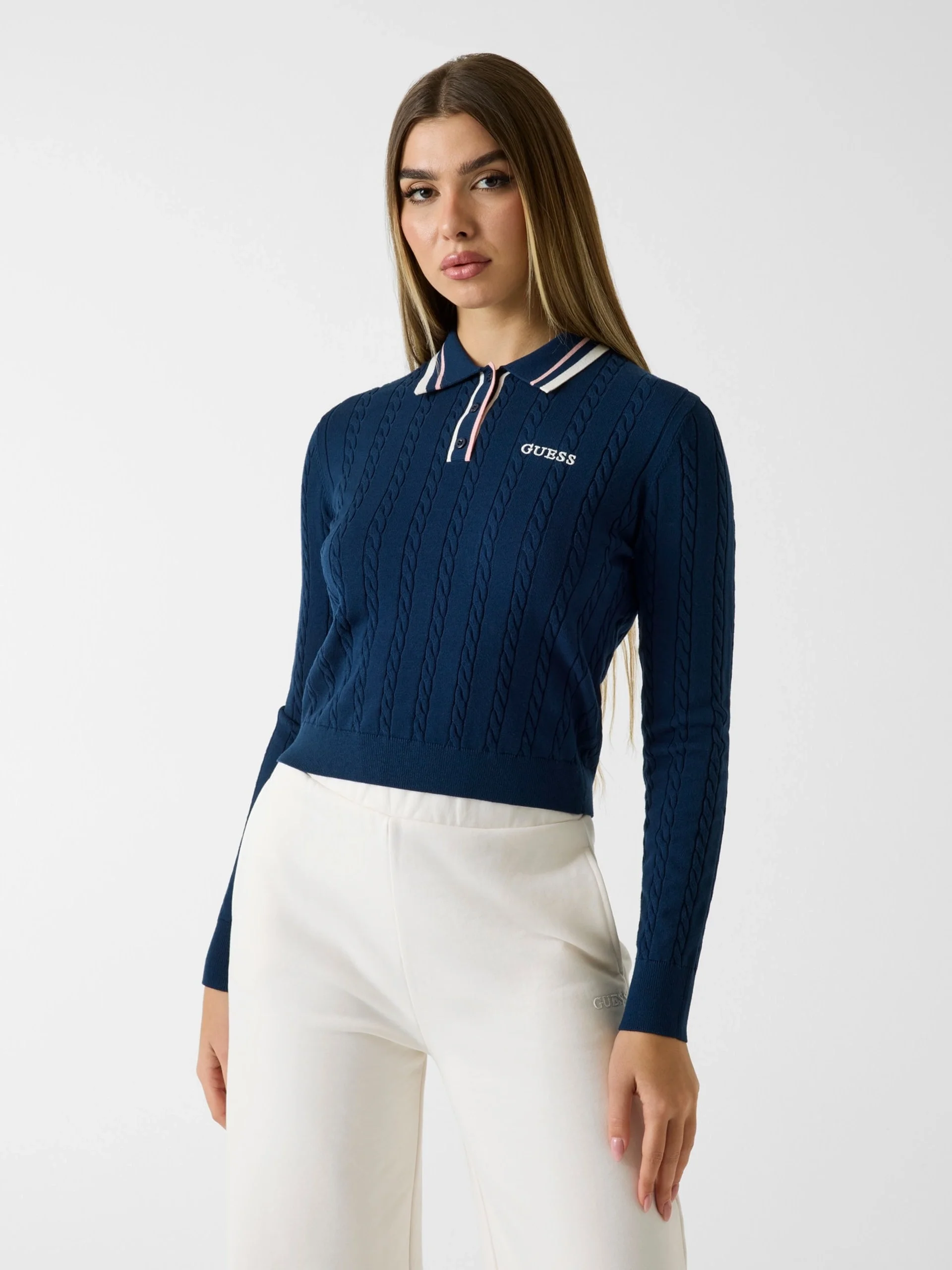 "adi_alt": "Guess Shari Polo Yakal\u0131 Triko Kad\u0131n Beyaz Triko V6RR01Z4652-G1O6",
