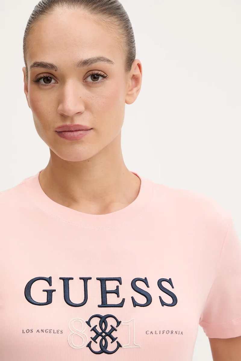 Guess Steffi Bisiklet Yaka Kısa Kollu Kadın Pembe T-shirt V6RI13KD772-C420