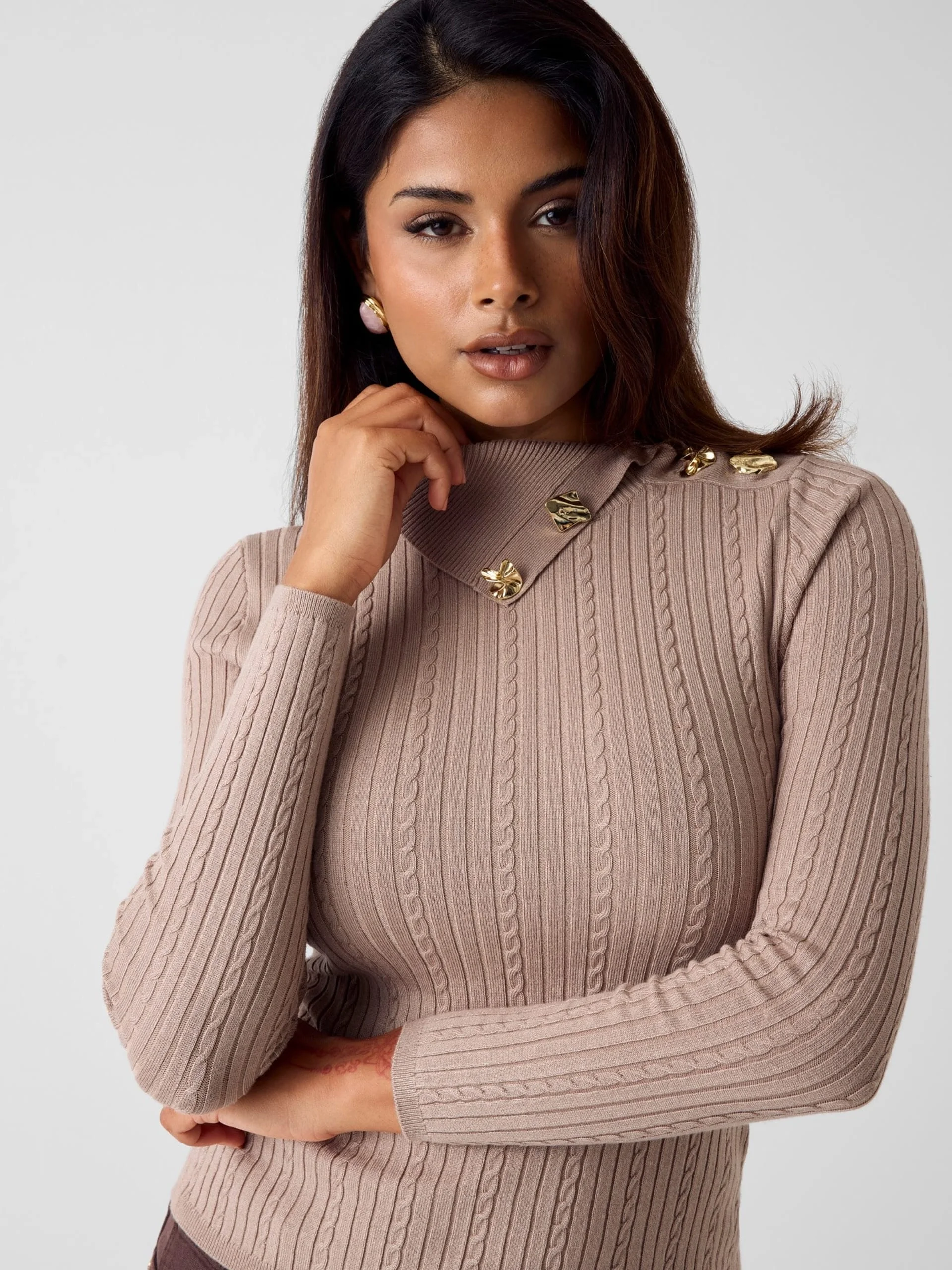 • Model: Priscilla Cable Knit Turtleneck