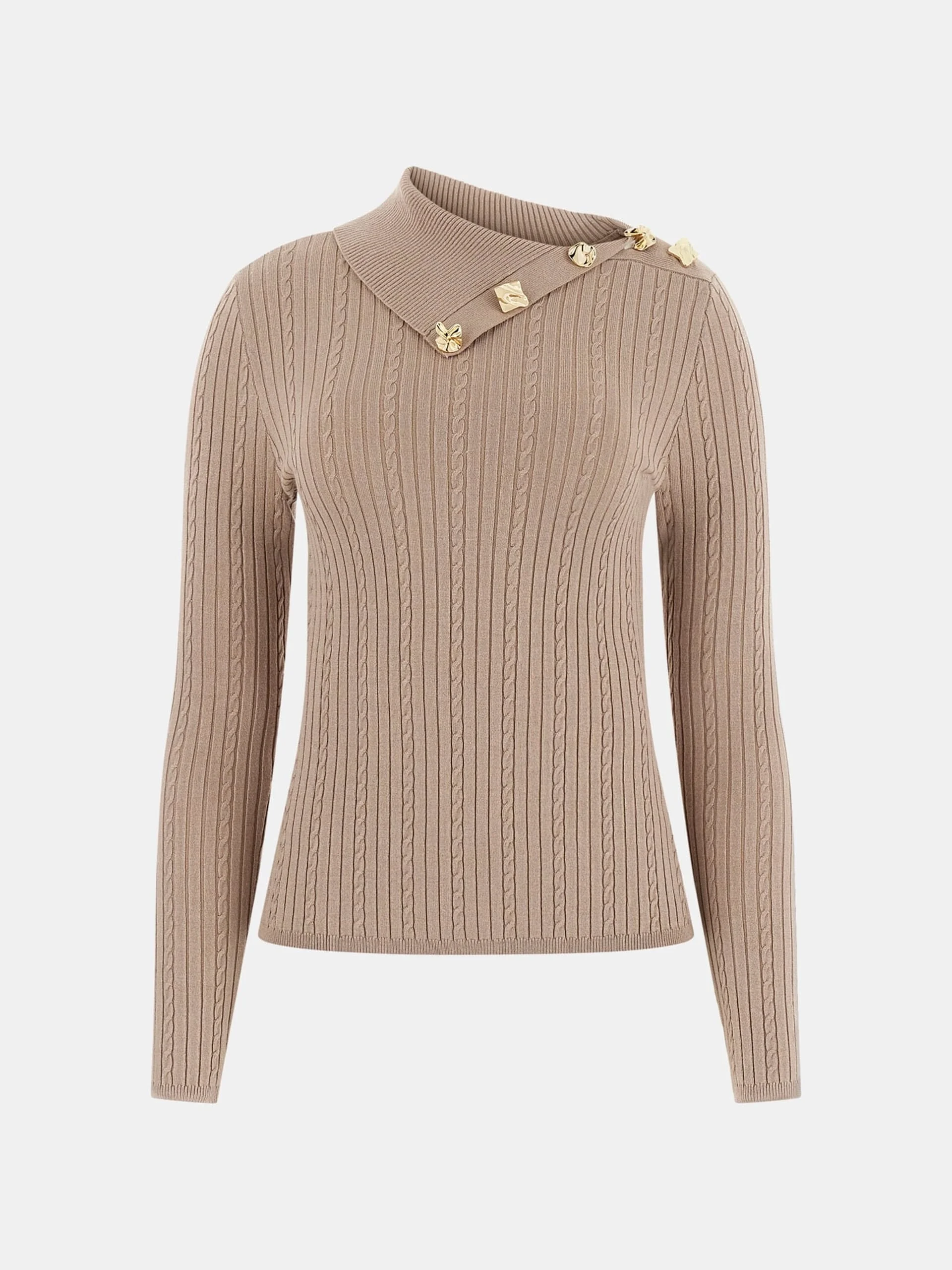 Guess Uzun Kollu Balıkçı Yaka Priscilla Saç Örgü Fitilli Triko Kadın Bej Triko W6RR07Z2YK2-A10L