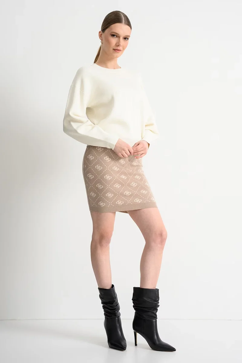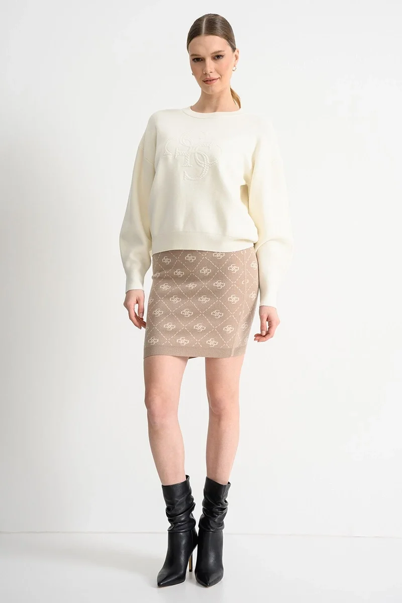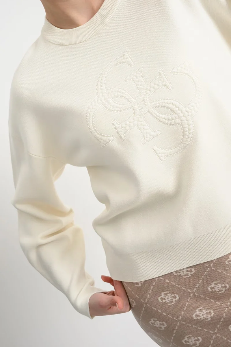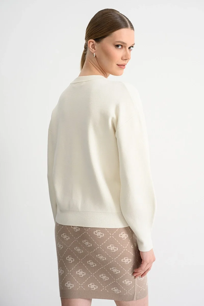 Guess Uzun Kollu Bisiklet Yaka Parker 4G Logolu Triko Kadın Beyaz Triko W6RR48Z26I2-G047