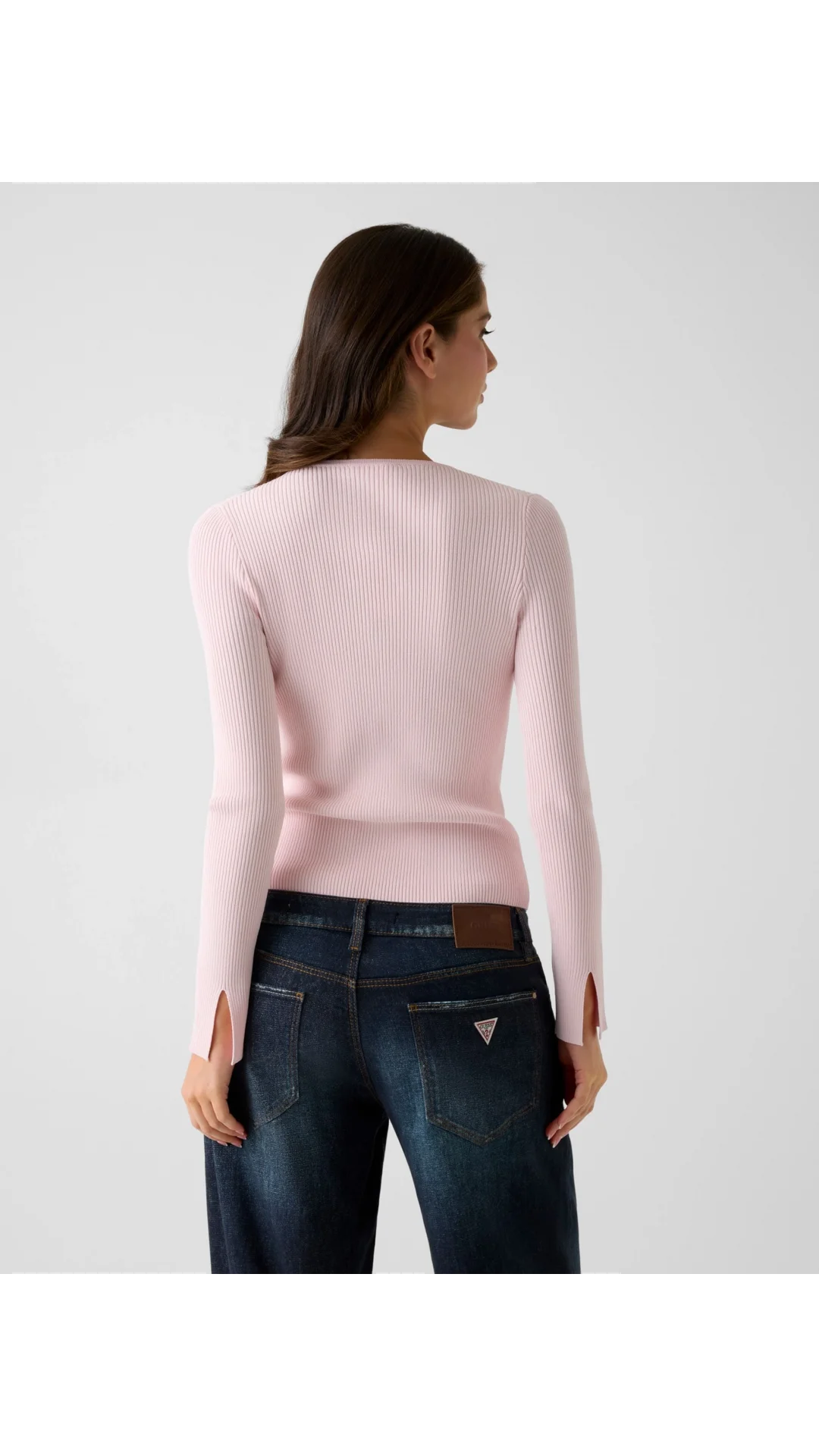 Guess Uzun Kollu Bisiklet Yaka Stella Hırka Triko Kadın Pembe Triko W6RR35Z0132-A627