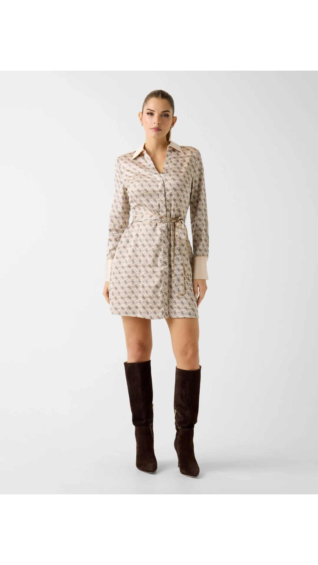 Guess Uzun Kollu Blerta Gömlek Kadın Beyaz Elbise W6RK90WF1T2-P1WE