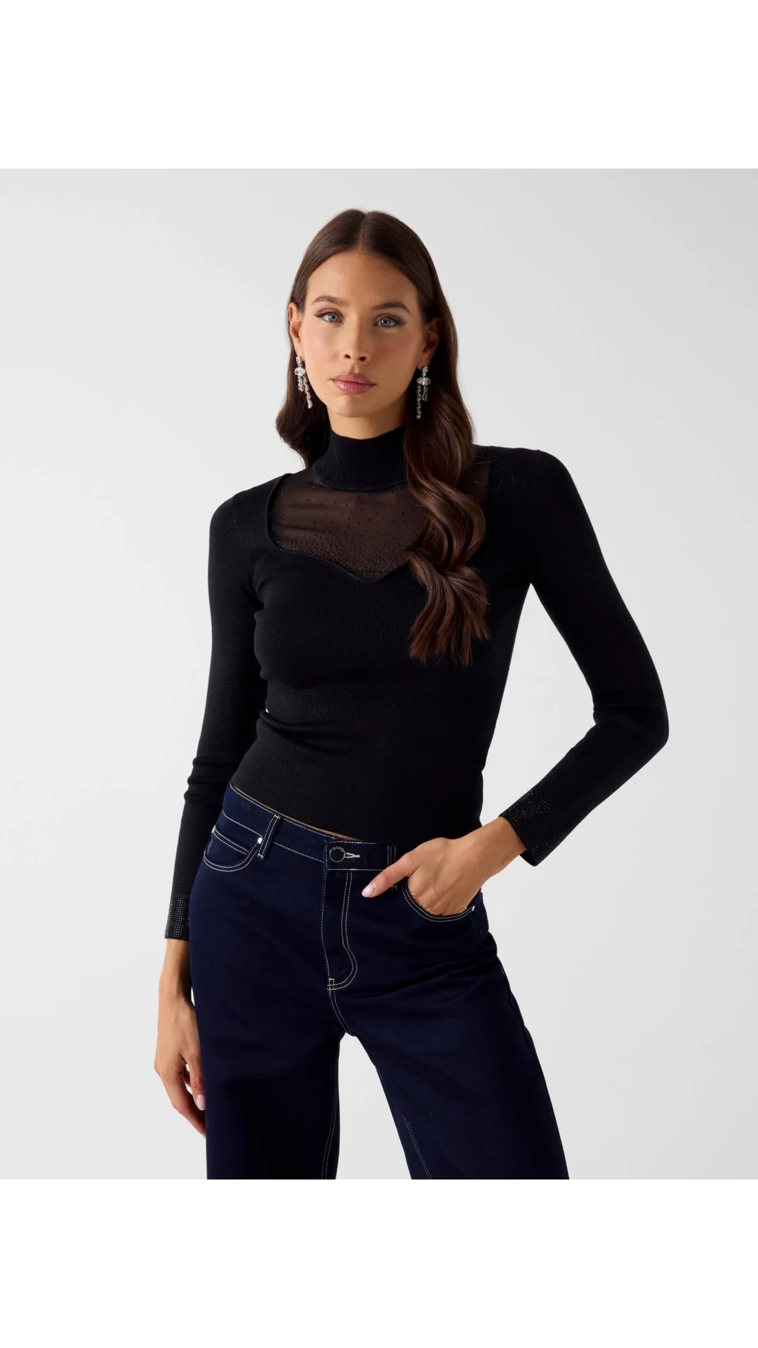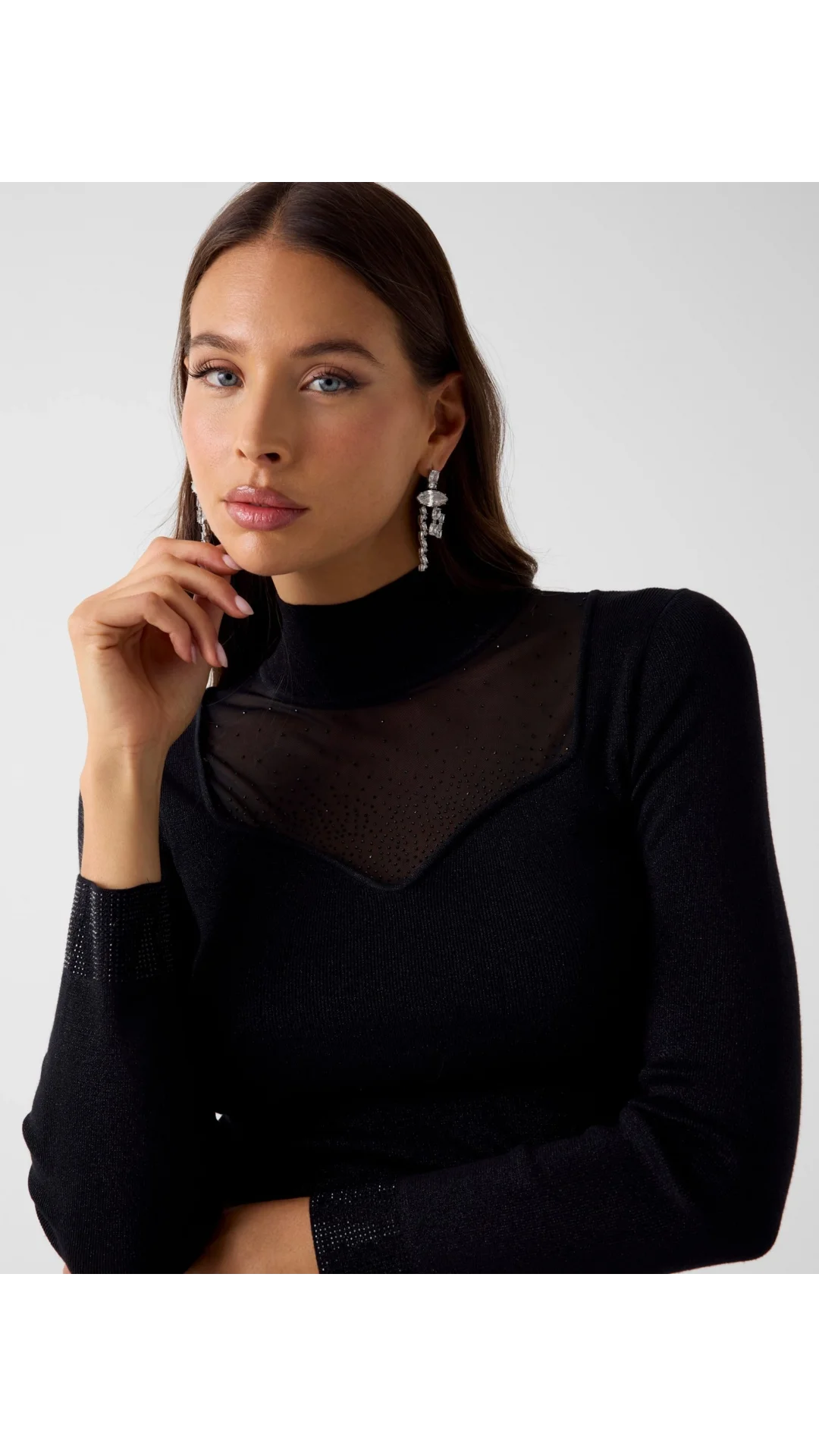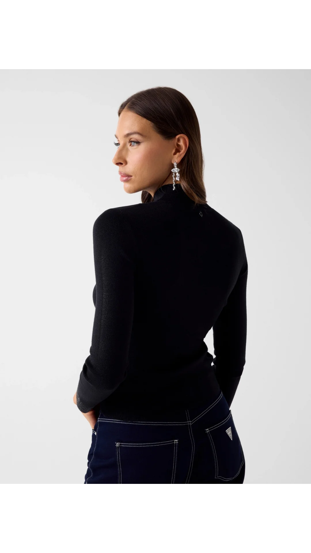 Guess Uzun Kollu Dik Yaka Lucy Taş İşlemeli Triko Kadın Siyah Triko W6RR45Z4842-JBLK