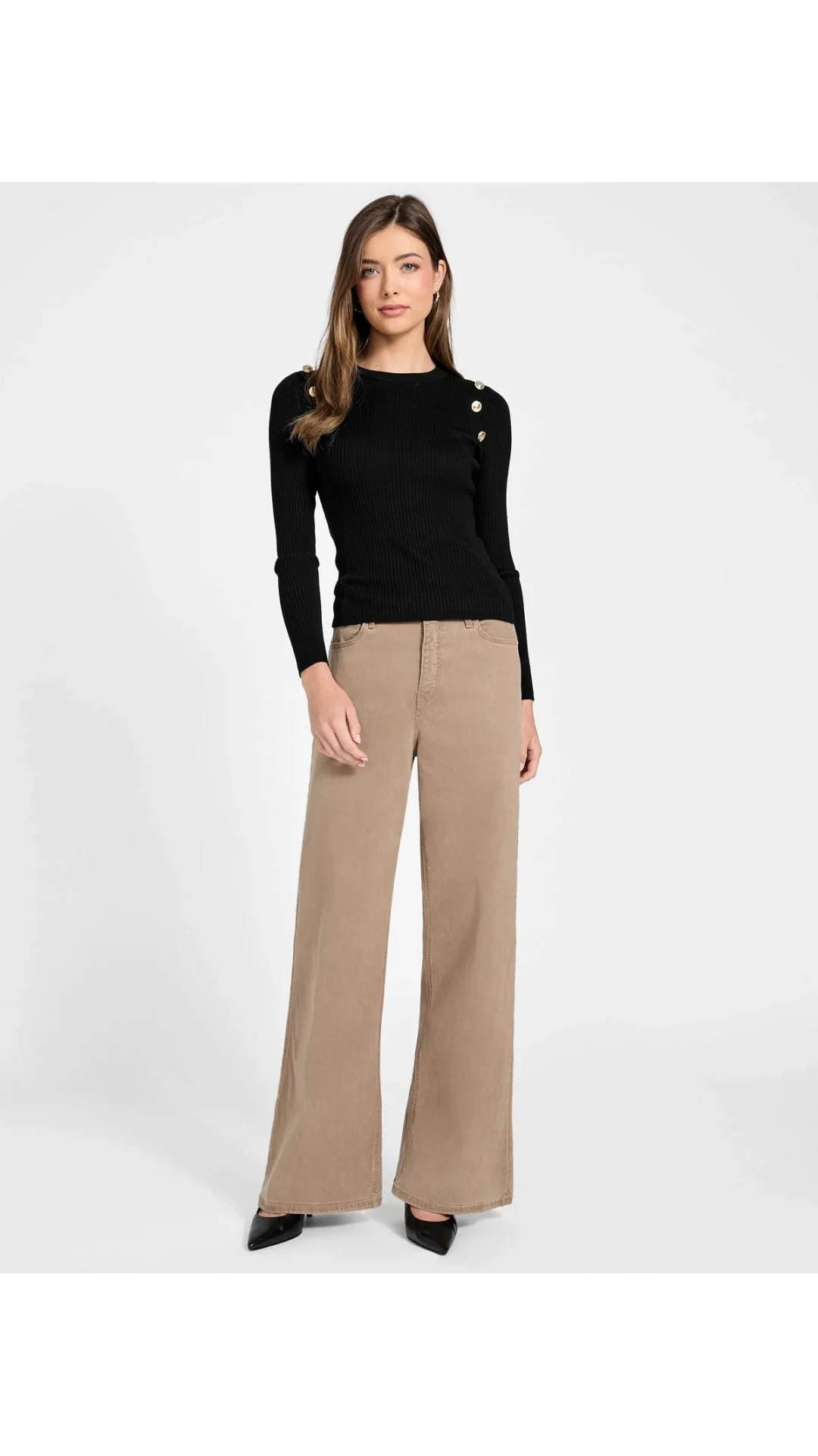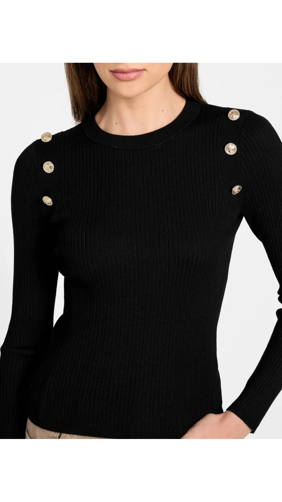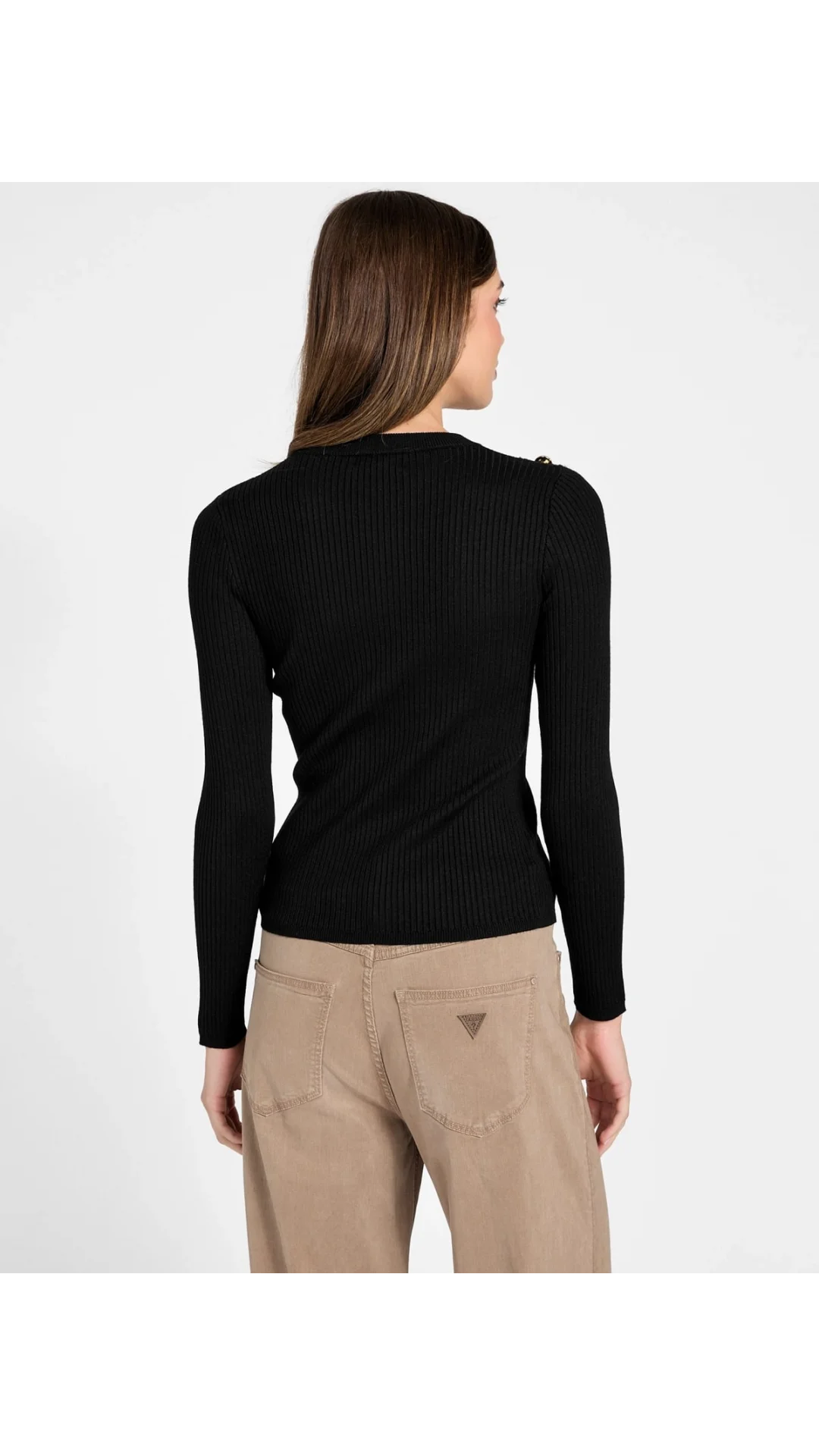 Guess Uzun Kollu Fitilli Logolu Düğmeli Vonn Kadın Siyah Triko W6RR58Z2YK2-JBLK