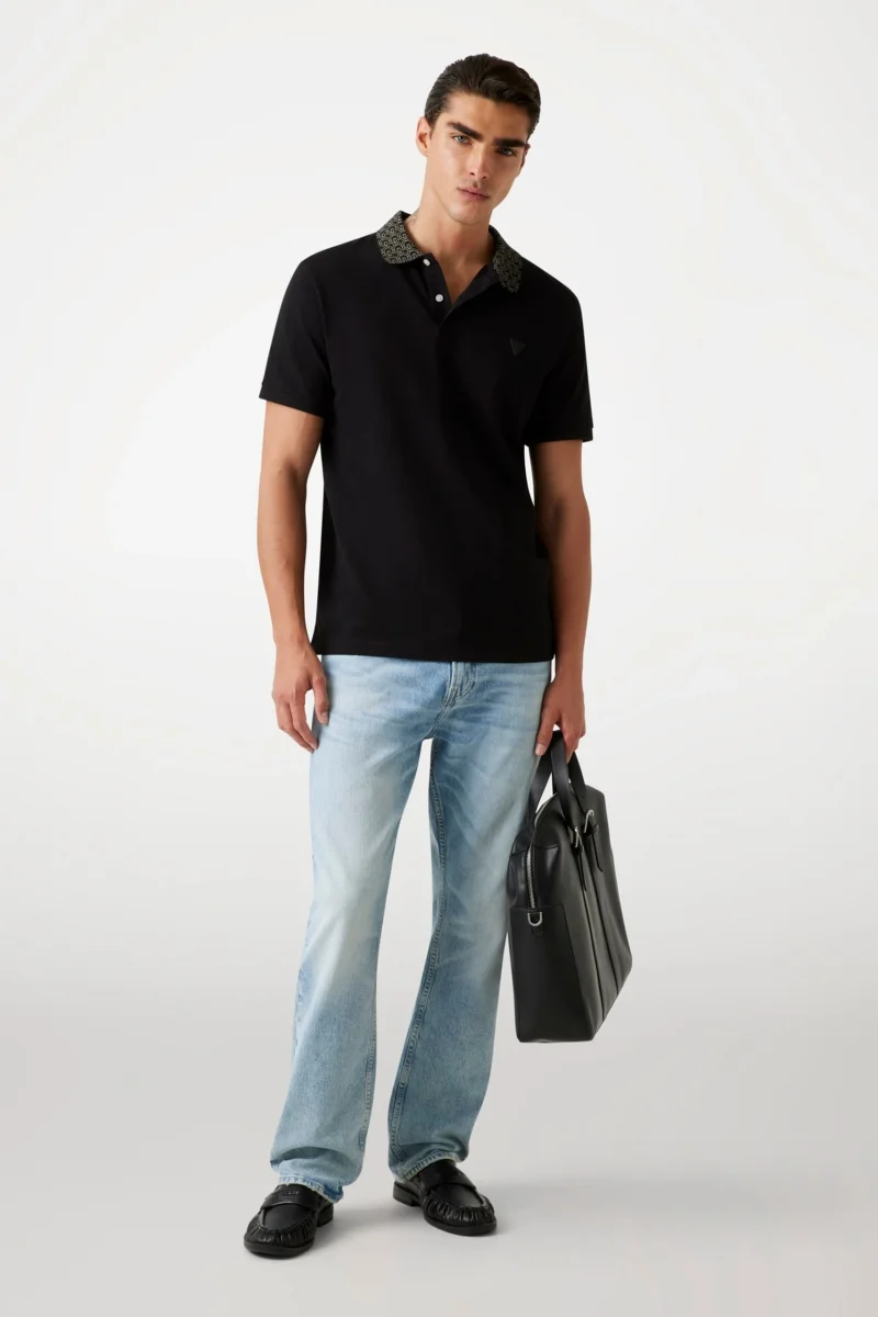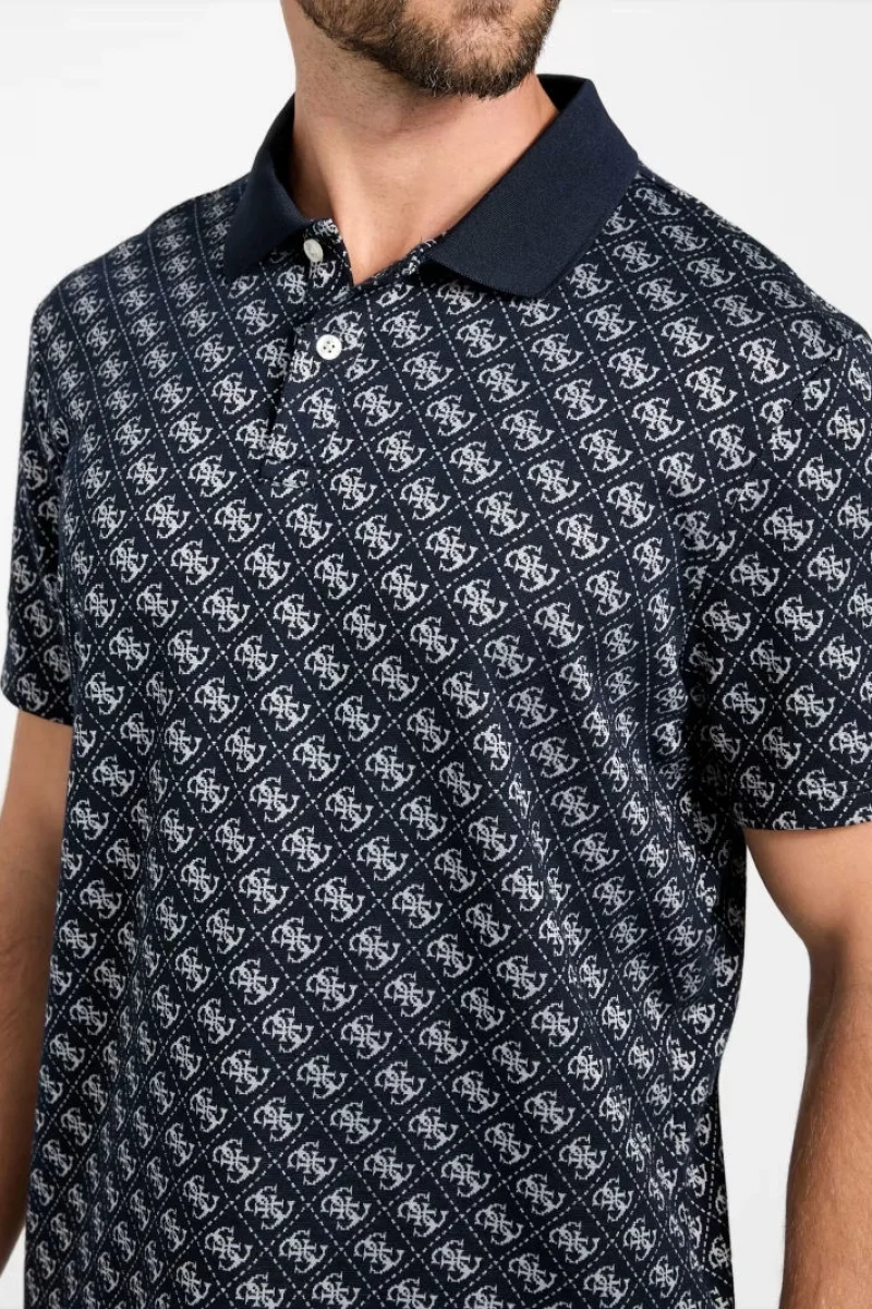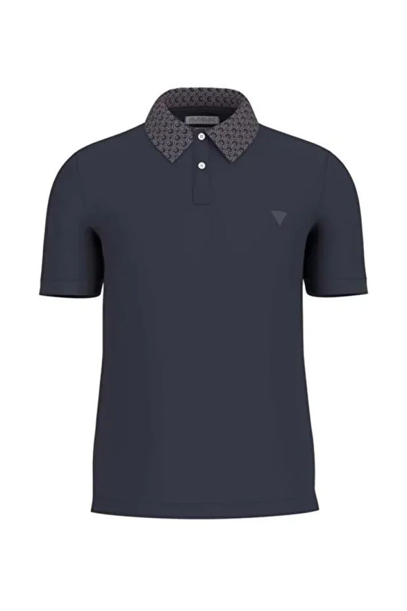 Guess Erkek Lacivert Yıkamalı Polo Tişört