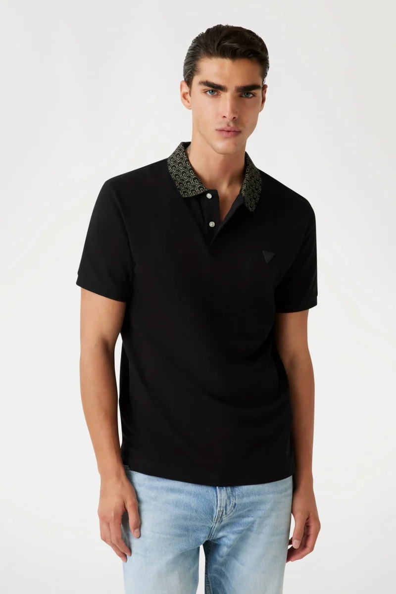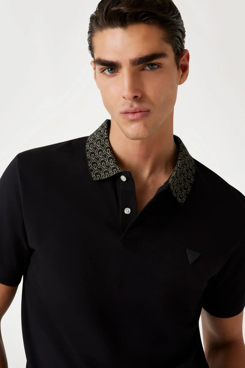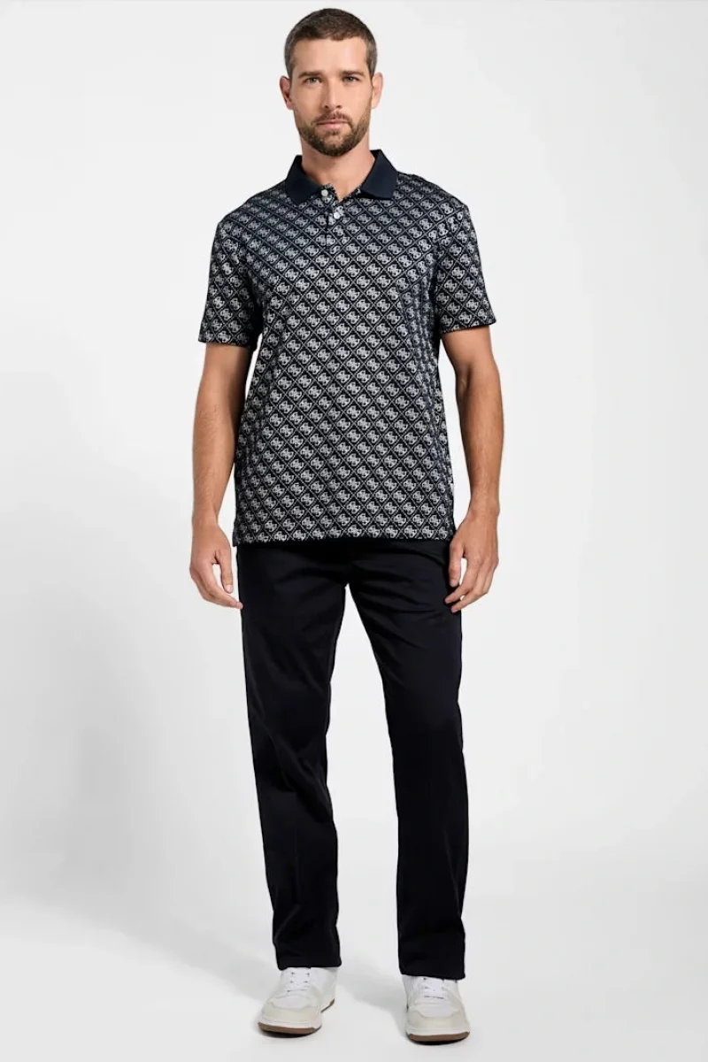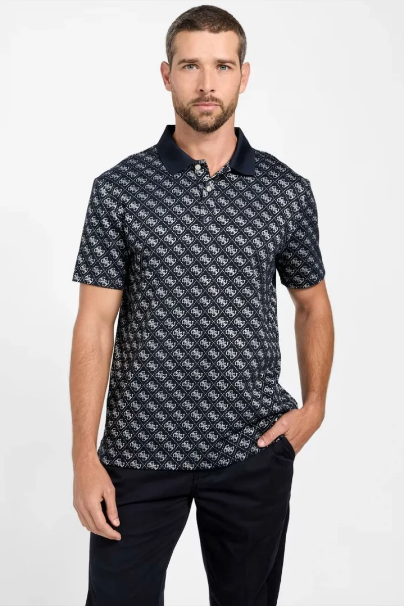 Guess Erkek Lacivert Yıkamalı Polo Tişört