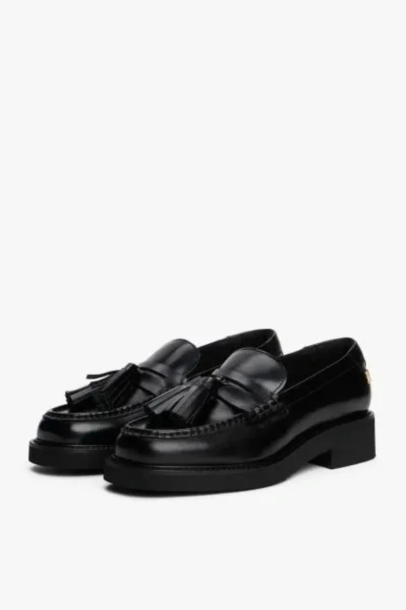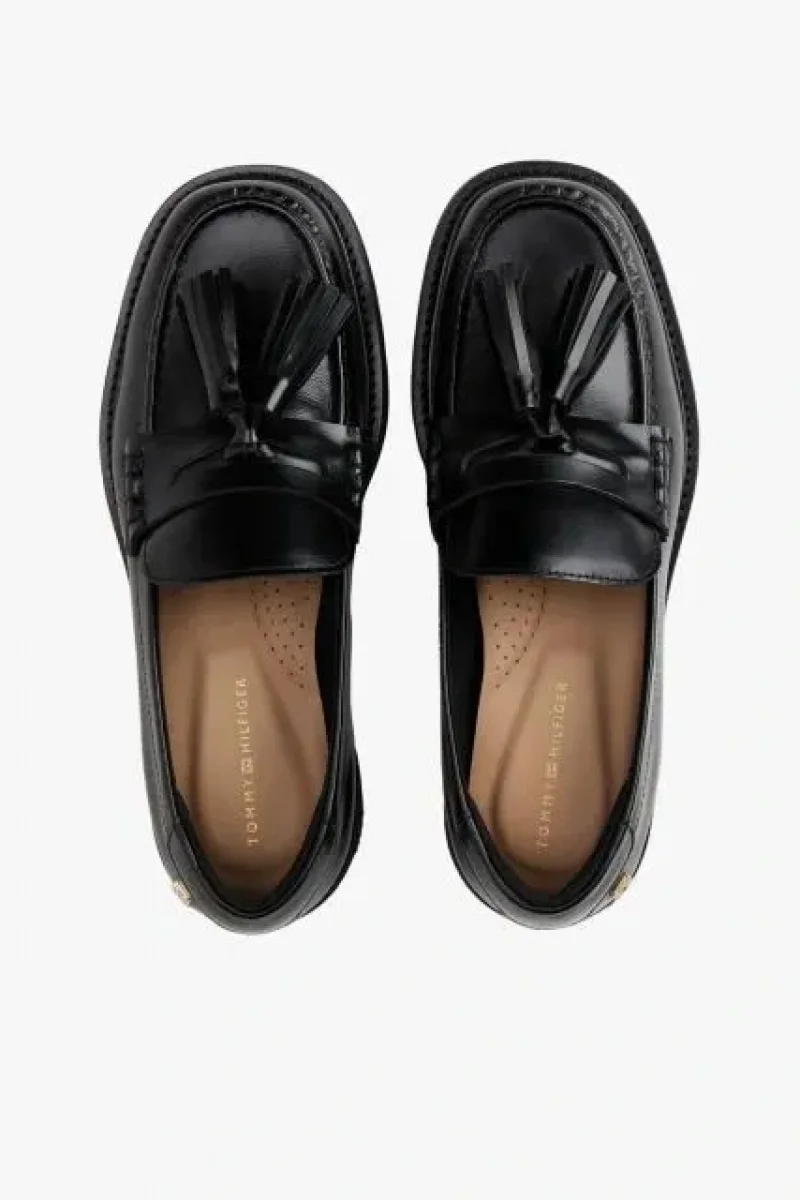 Tommy Hilfiger Püsküllü Köşeli Burun Deri Kadın Siyah Loafer FW0FW08749BDS