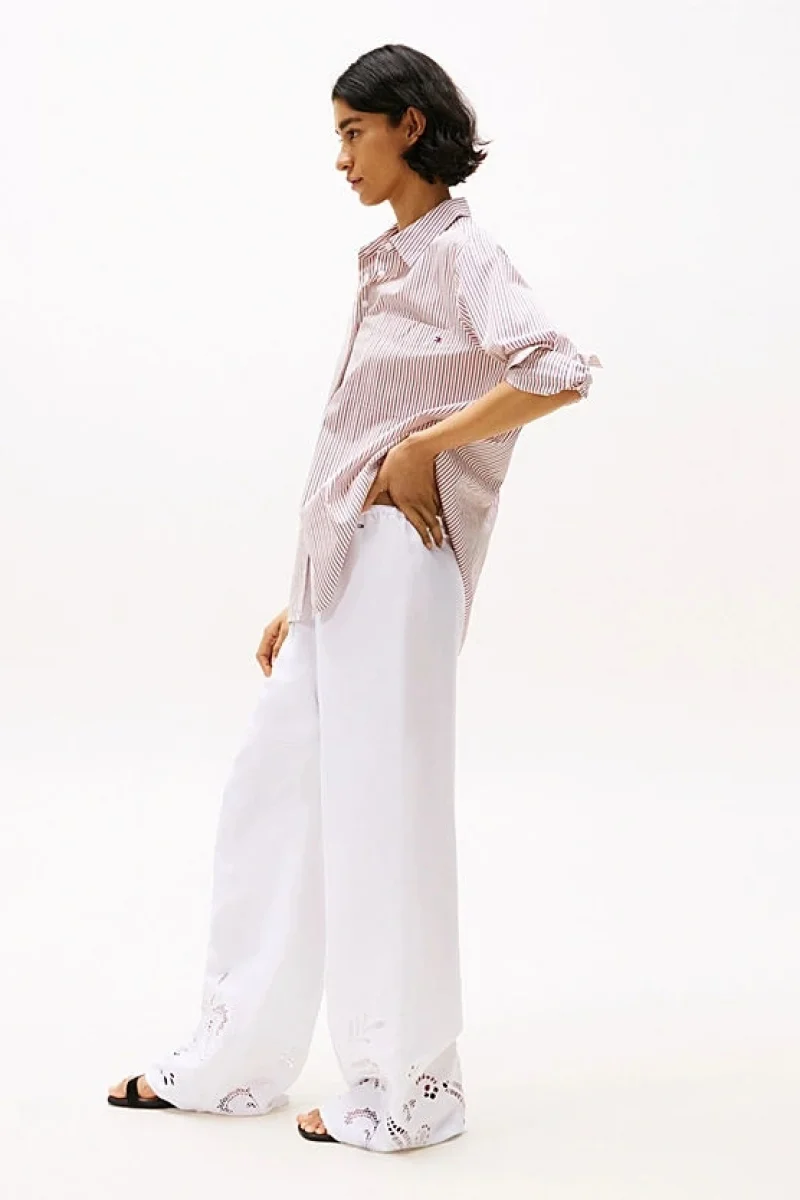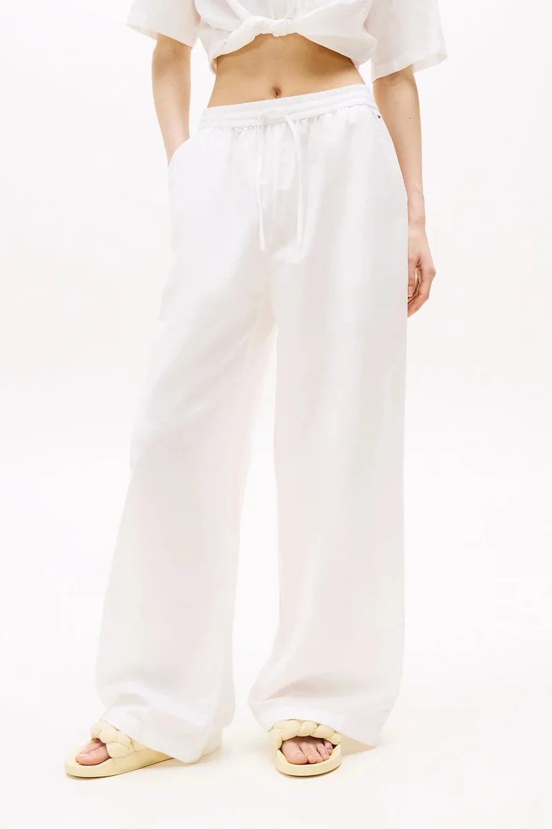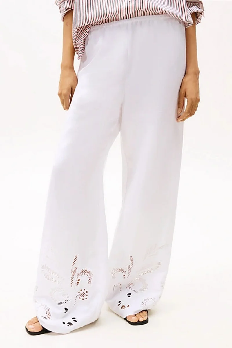 Tommy Hilfiger BRODERIE ANGLAISE LINEN PANTS Kadın Pantolon WW0WW44782YCF