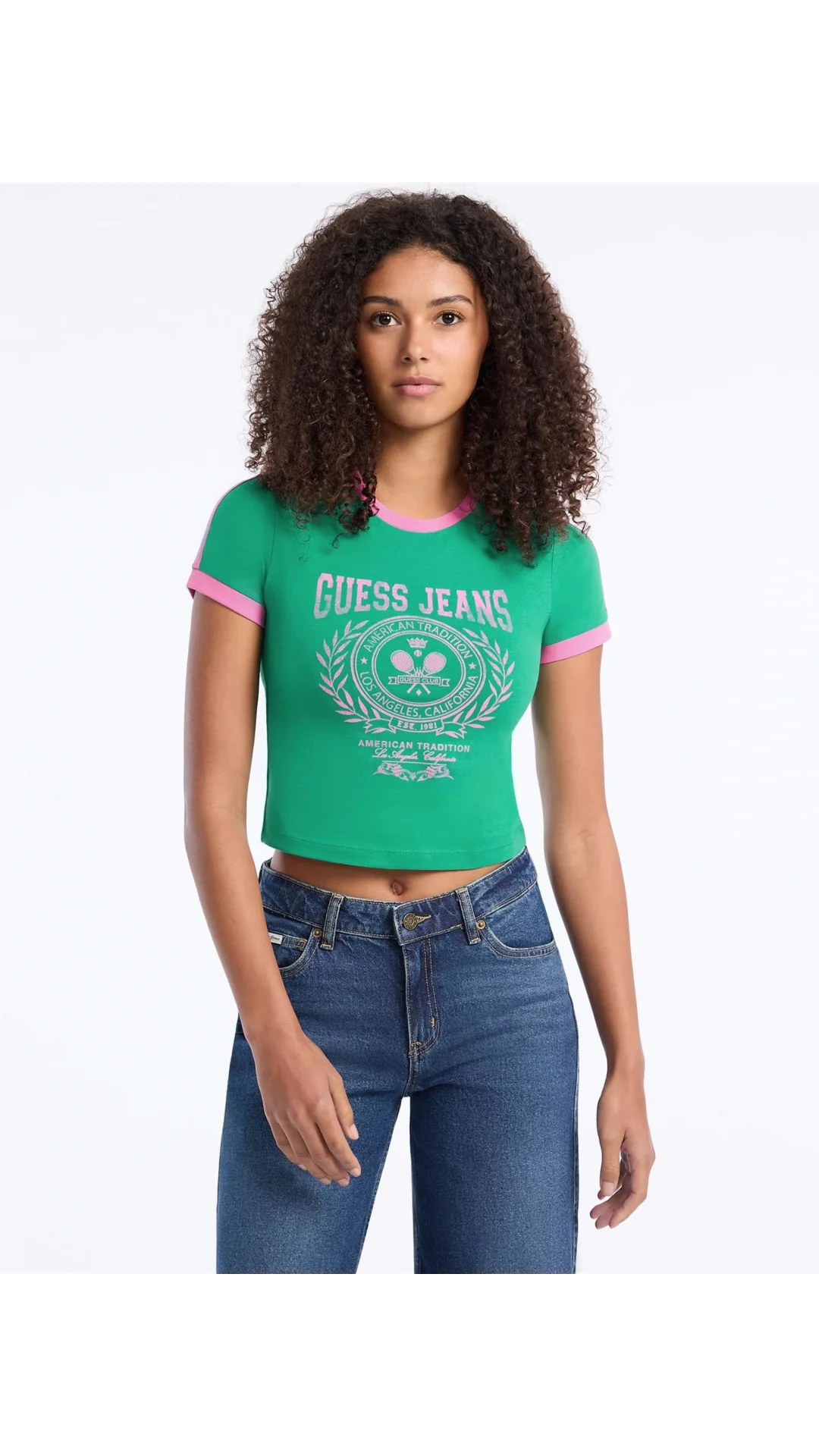 Guess Jeans Kadın Yeşil Boxy Fit T-Shirt W5YI03J1314-A899
