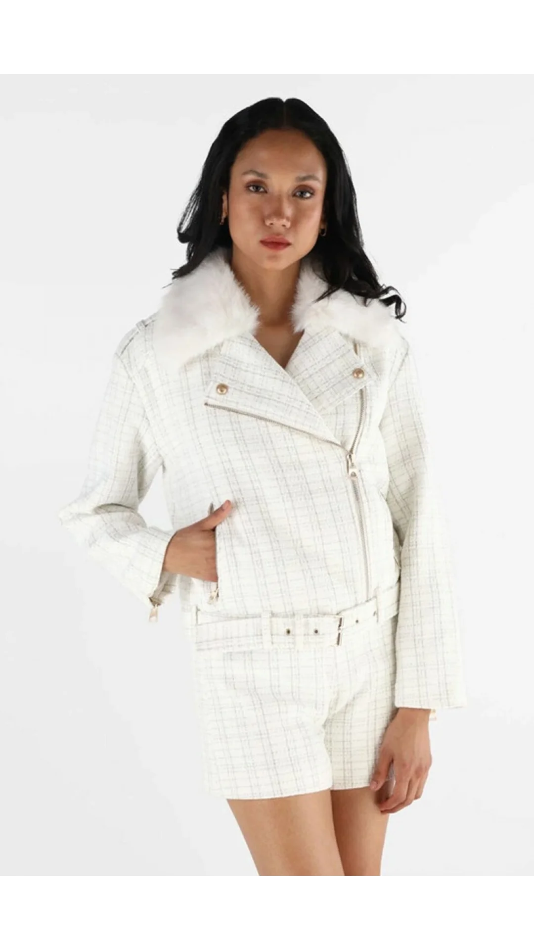 Guess Sandra Kadın Beyaz Biker Ceket W5BL16W2382-F0YK