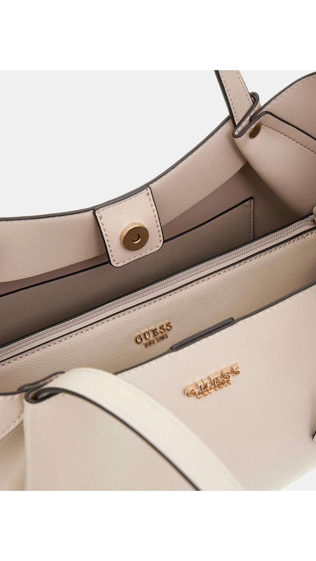 Guess Noelle kadın el çantası, soft bej rengi ve şık tasarımıyla günlük ve özel kombinlerinizin zarif tamamlayıcısıdır. Modern formu, ikonik Guess logosu ve kullanışlı iç hacmi sayesinde stil ve fonksiyonelliği bir arada sunar.