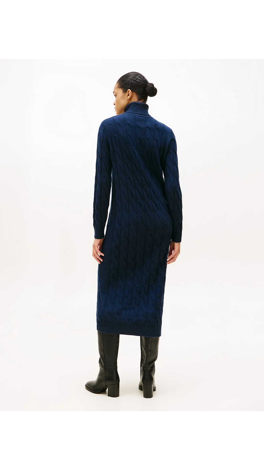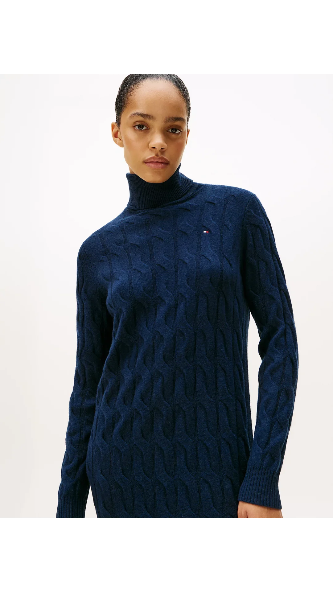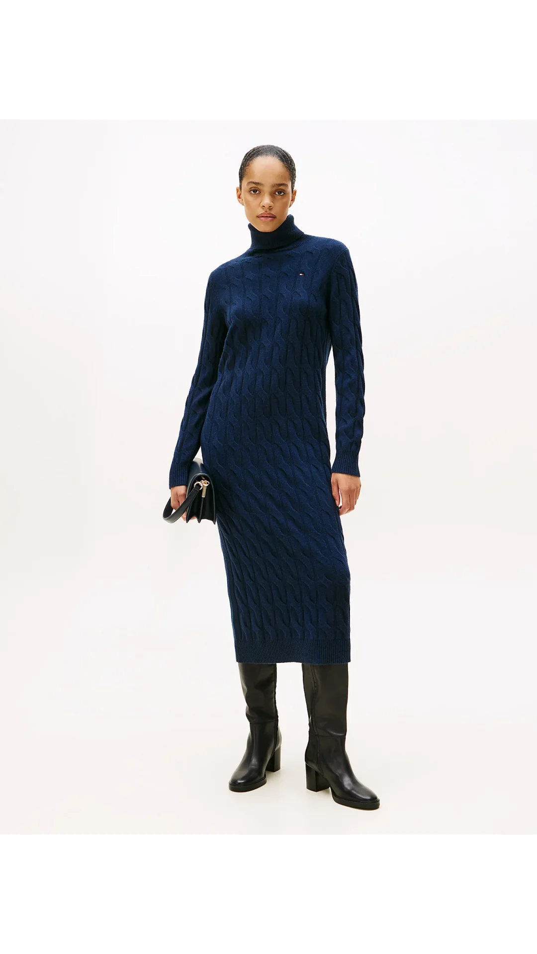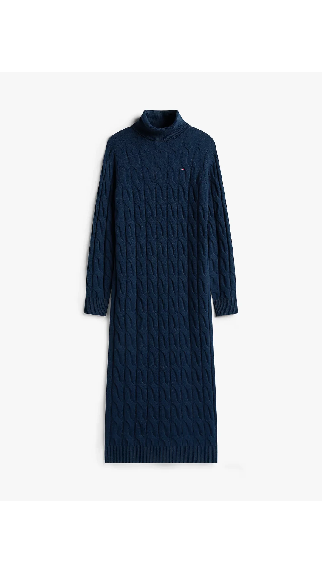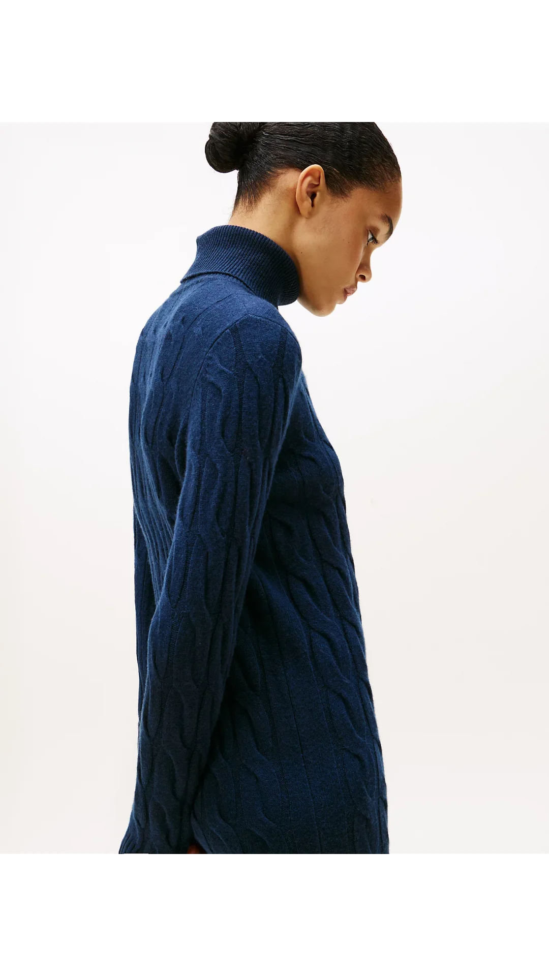 Tommy Hilfiger Yumuşak Yün Saç Örgülü Balıkçı Yaka Uzun Kollu Kadın Mavi Elbise WW0WW46429C1G
