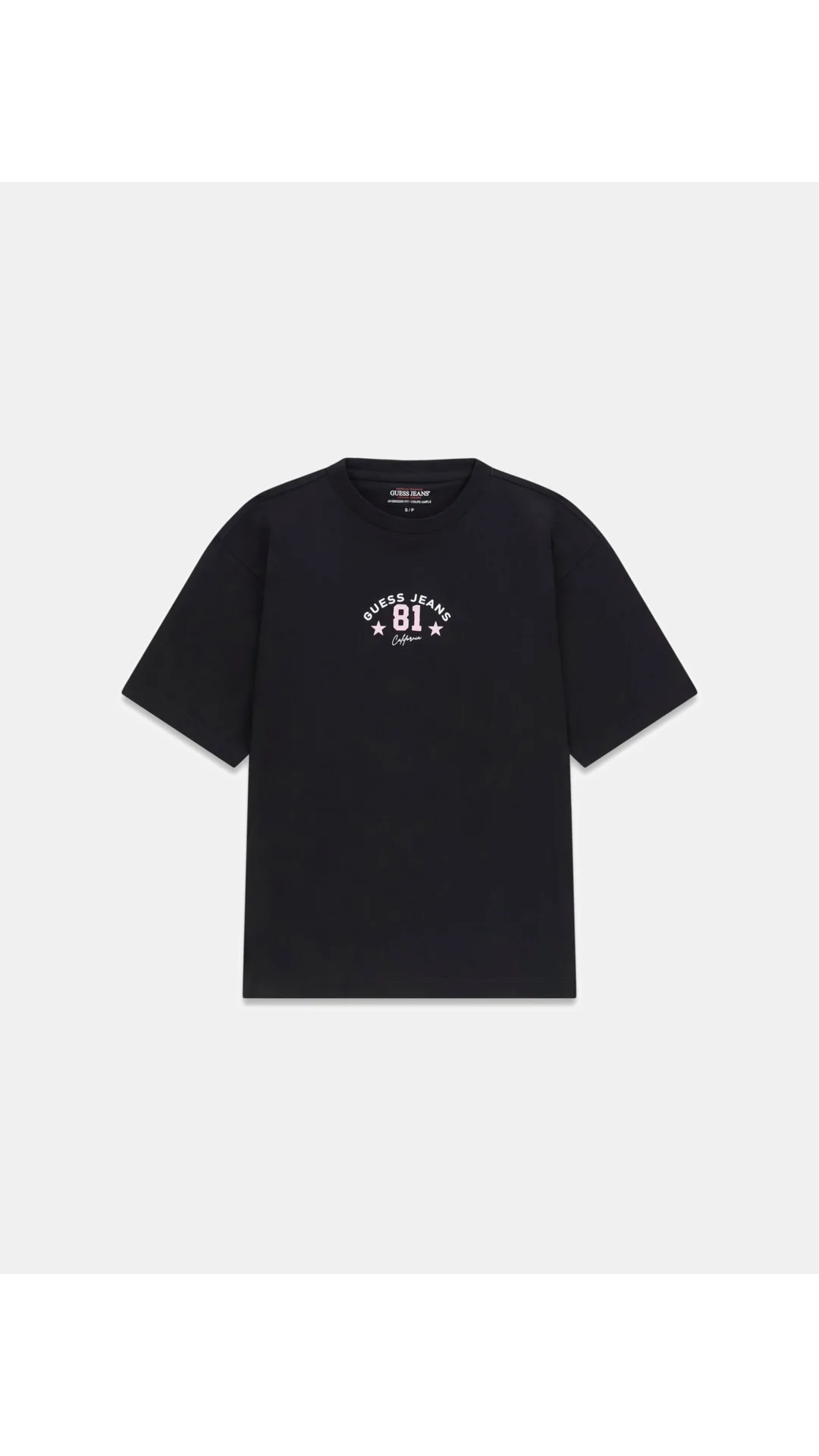 Guess GJ Kısa Kollu Bisiklet Yaka Büyük Beden 81 Yıldız Kadın Siyah T-shirt W6RI20K8HM0-JBLK