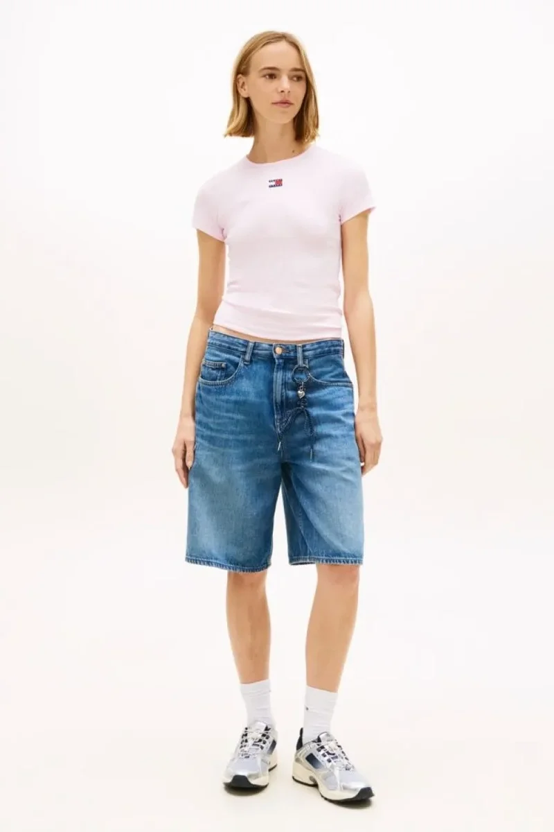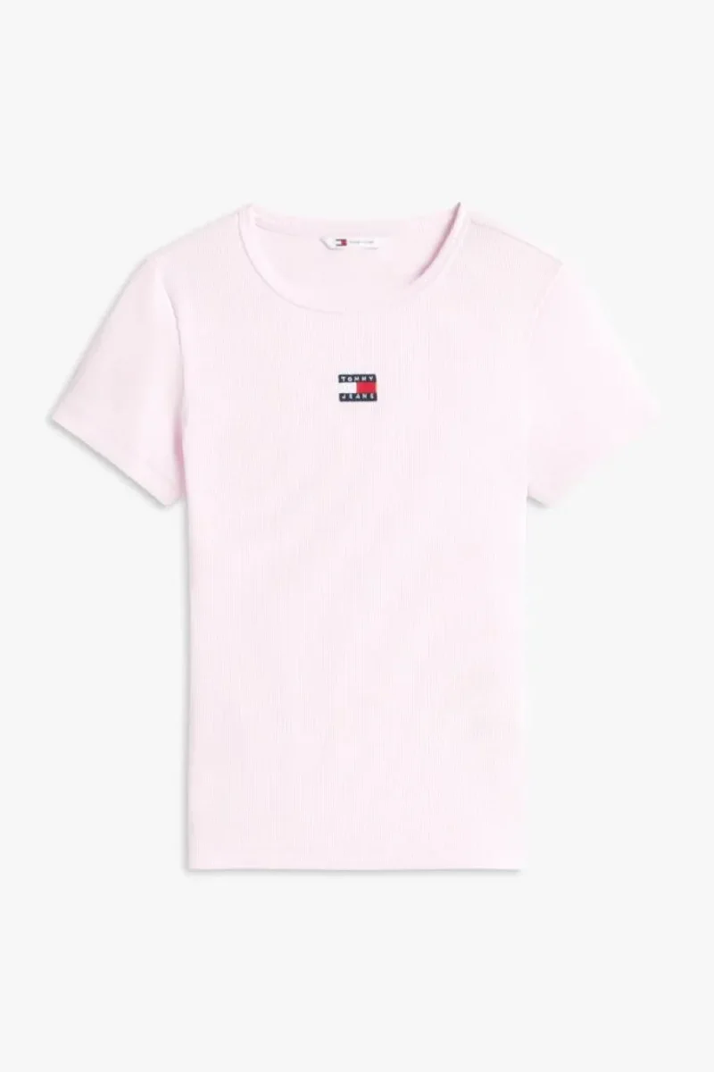 Tommy Hilfiger TJW Dar Kesim Amblemli Fitilli Kadın Pembe T-shirt DW0DW17881TN9