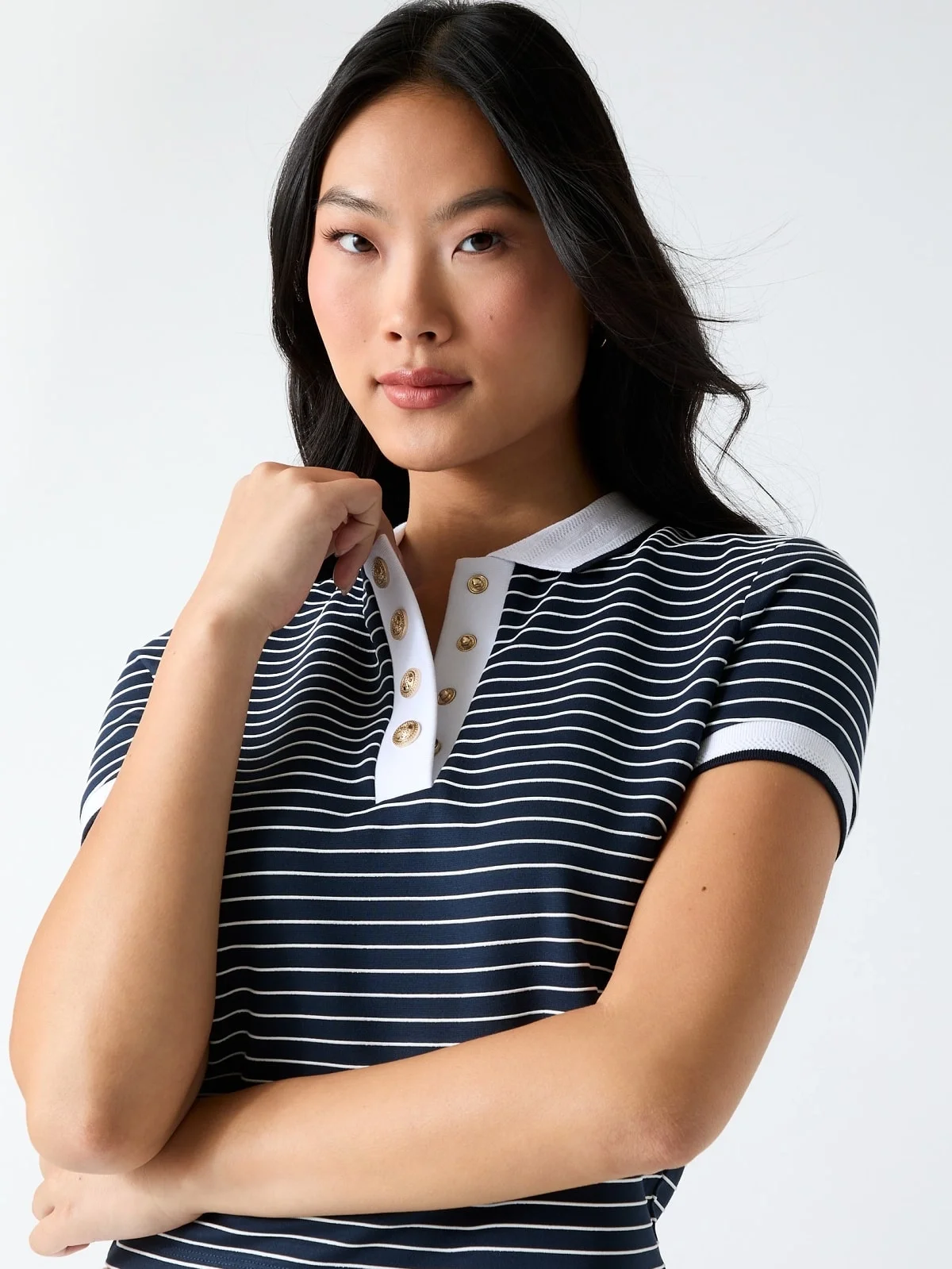 Guess Kısa Kollu Polo Yakalı Alphonsine Çizgili Kadın Çok Renkli Polo T-shirt W6GP17K2946-SB09