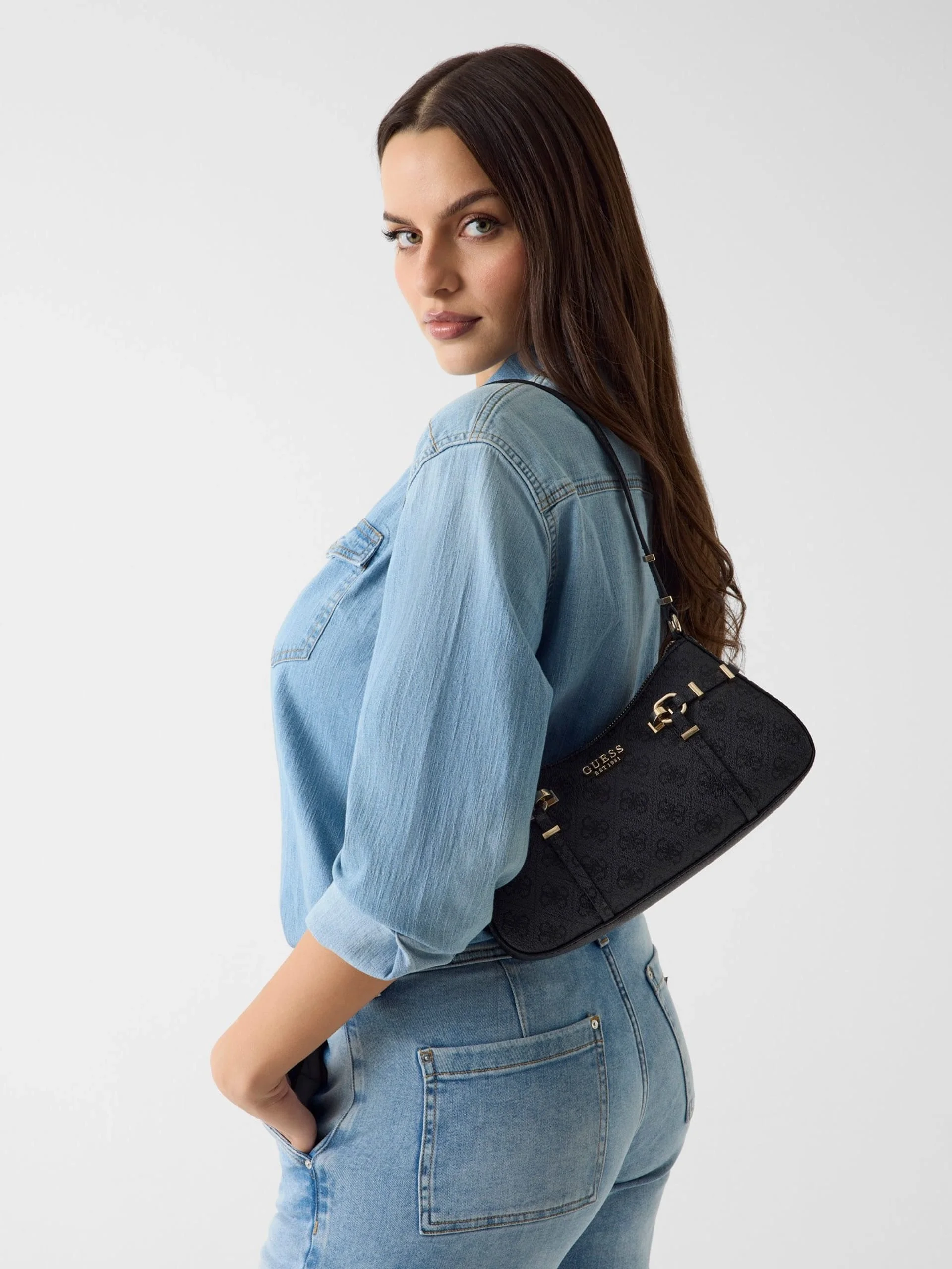Guess Leona Logolu Kadın Antrasit Omuz Çantası HWSG9917180-CLO