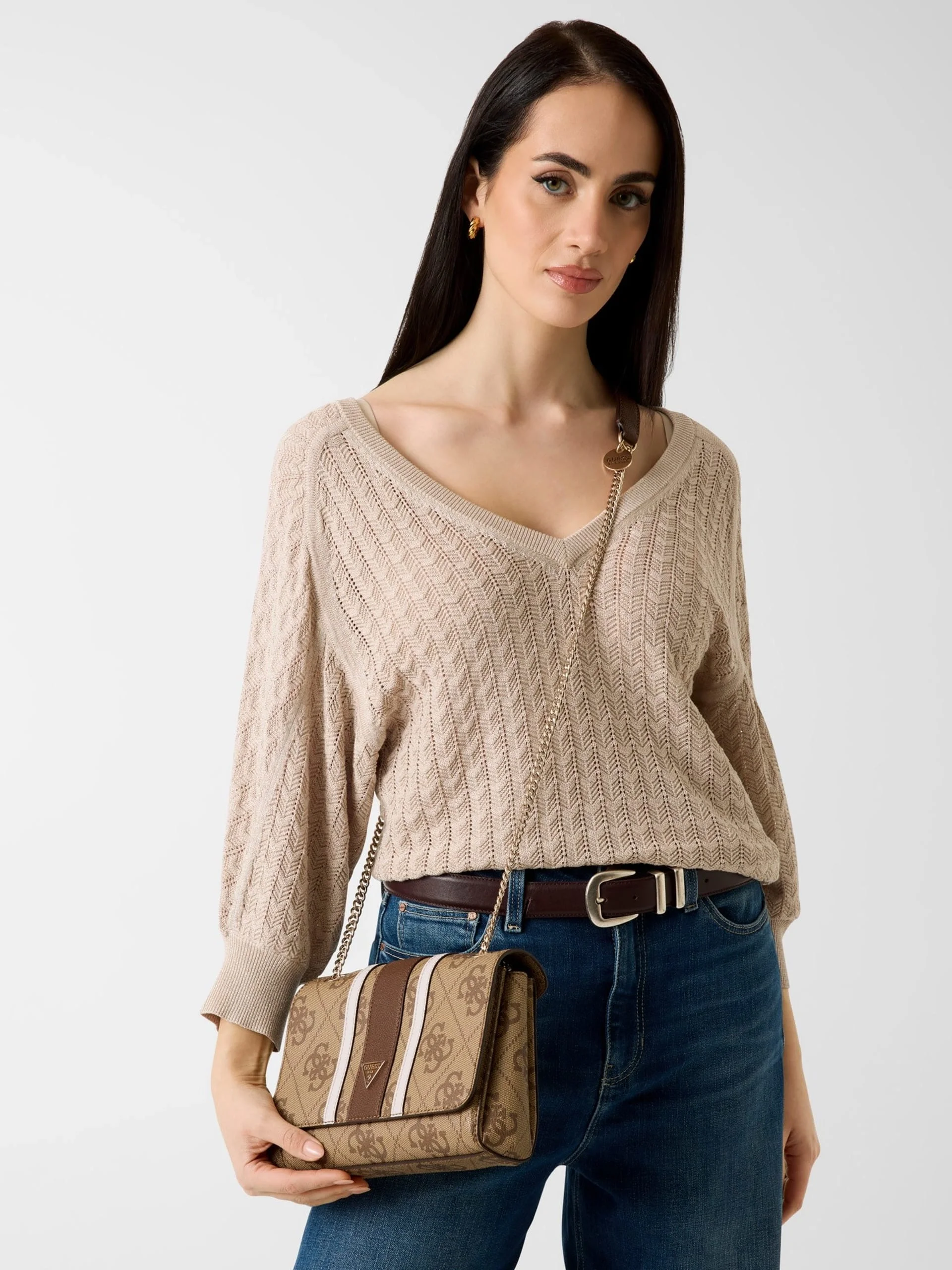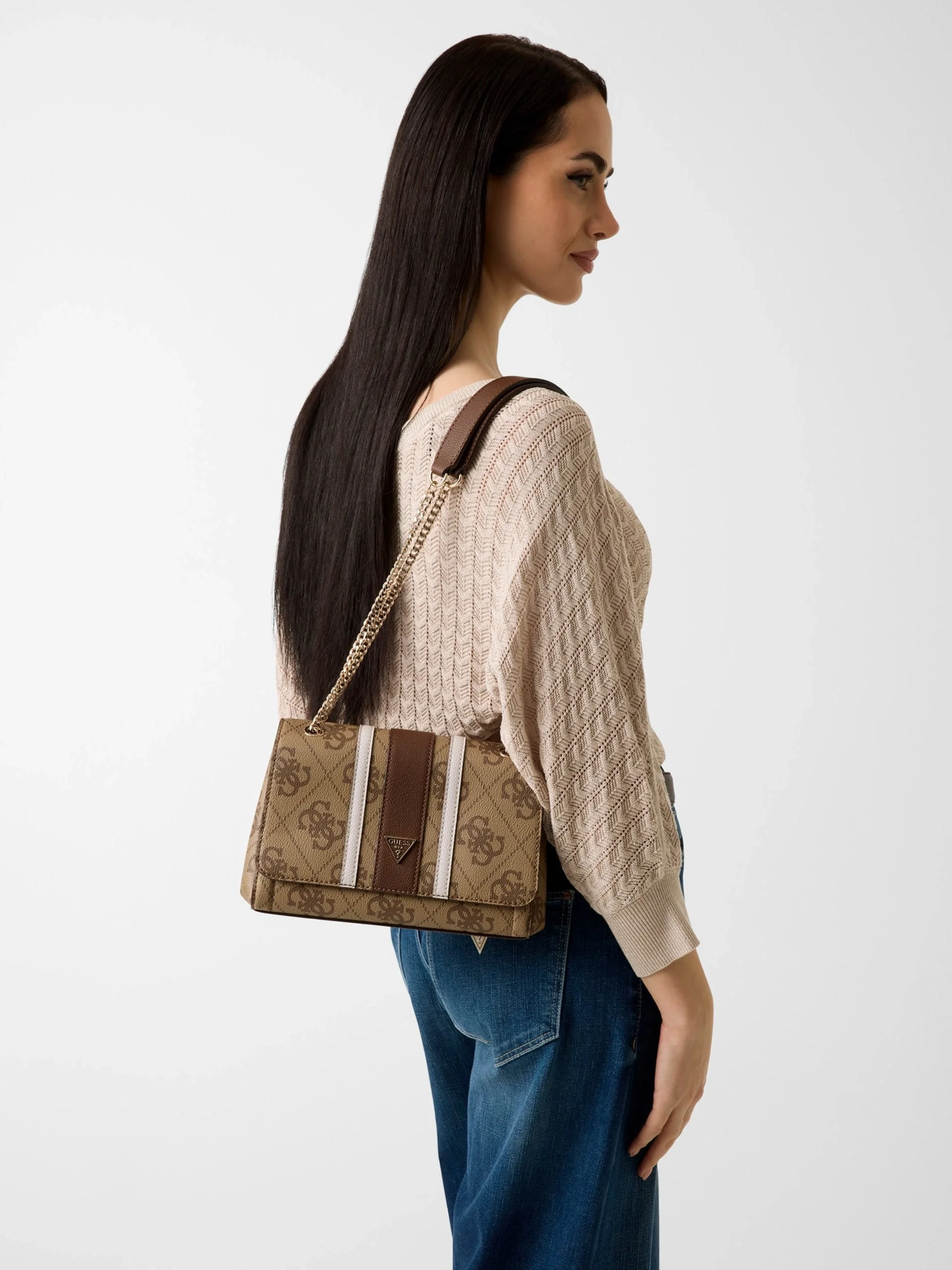 Guess Noelle II Dönüştürülebilir Kapaklı Çapraz Askılı Kadın Kahverengi Omuz Çantası HWSS9672210-LGW