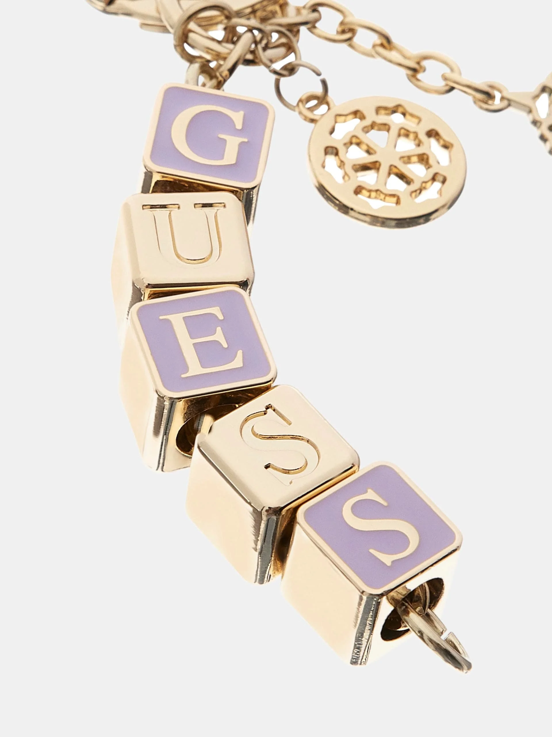 Çok Fonksiyonlu Kullanım: Güçlü metal halkası sayesinde anahtarlarınızı bir arada tutar; pratik klipsi (karabina) sayesinde ise Guess çantalarınızın askılarına takılarak şık bir "bag charm" olarak kullanılabilir.