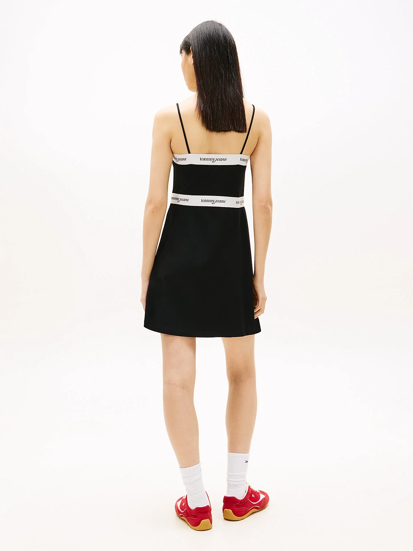 Tommy Hilfiger TJW Şerit Detaylı İnce Askılı Mini Kadın Siyah Elbise DW0DW22337BDS