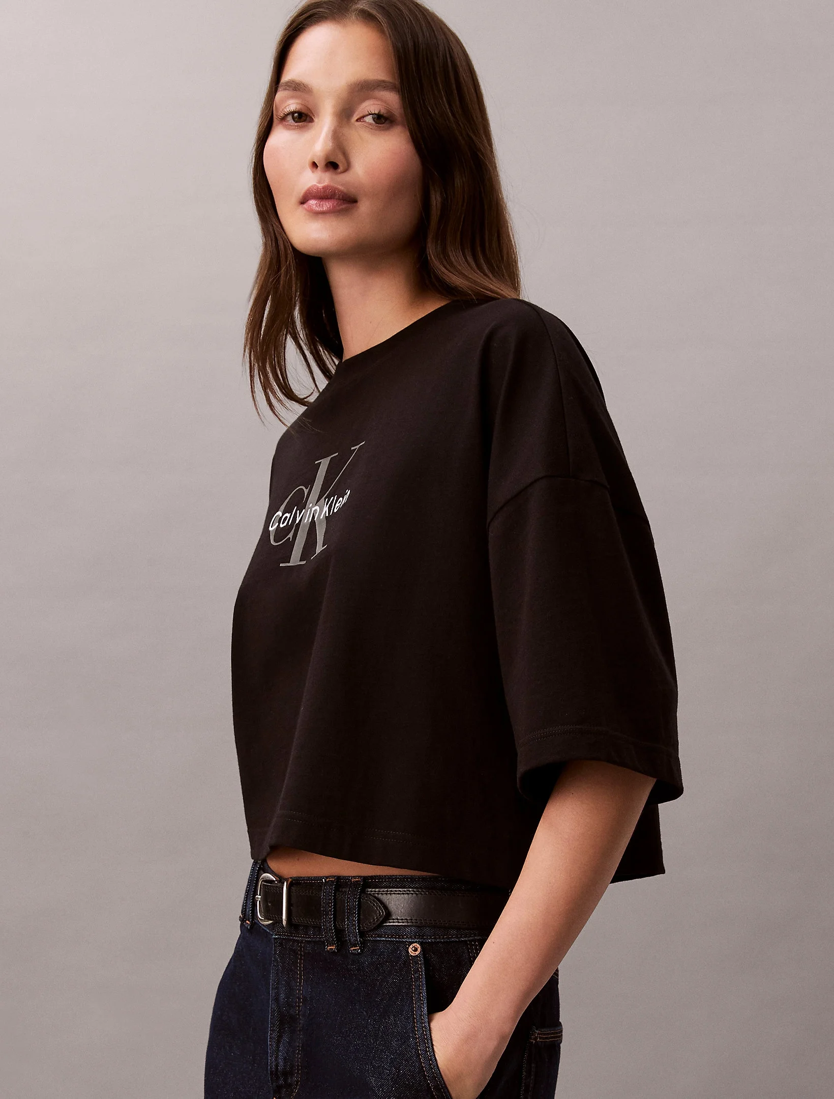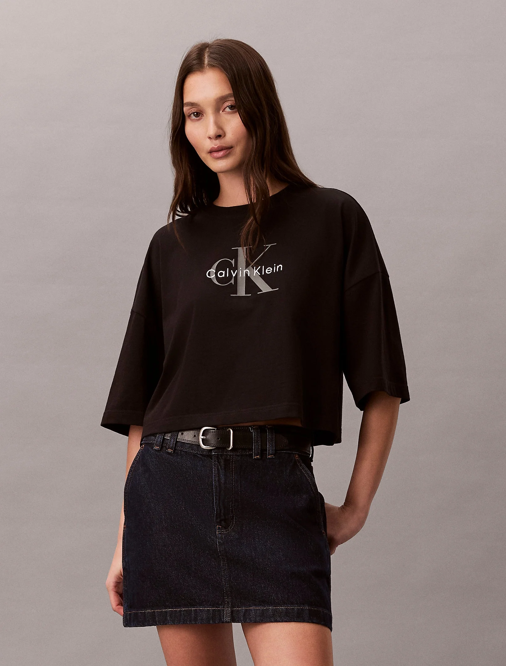 Calvin Klein Kısa Kollu Kutulu Kesim Kısa Monologo Kadın Siyah T-shirt LV047F828G-UB1