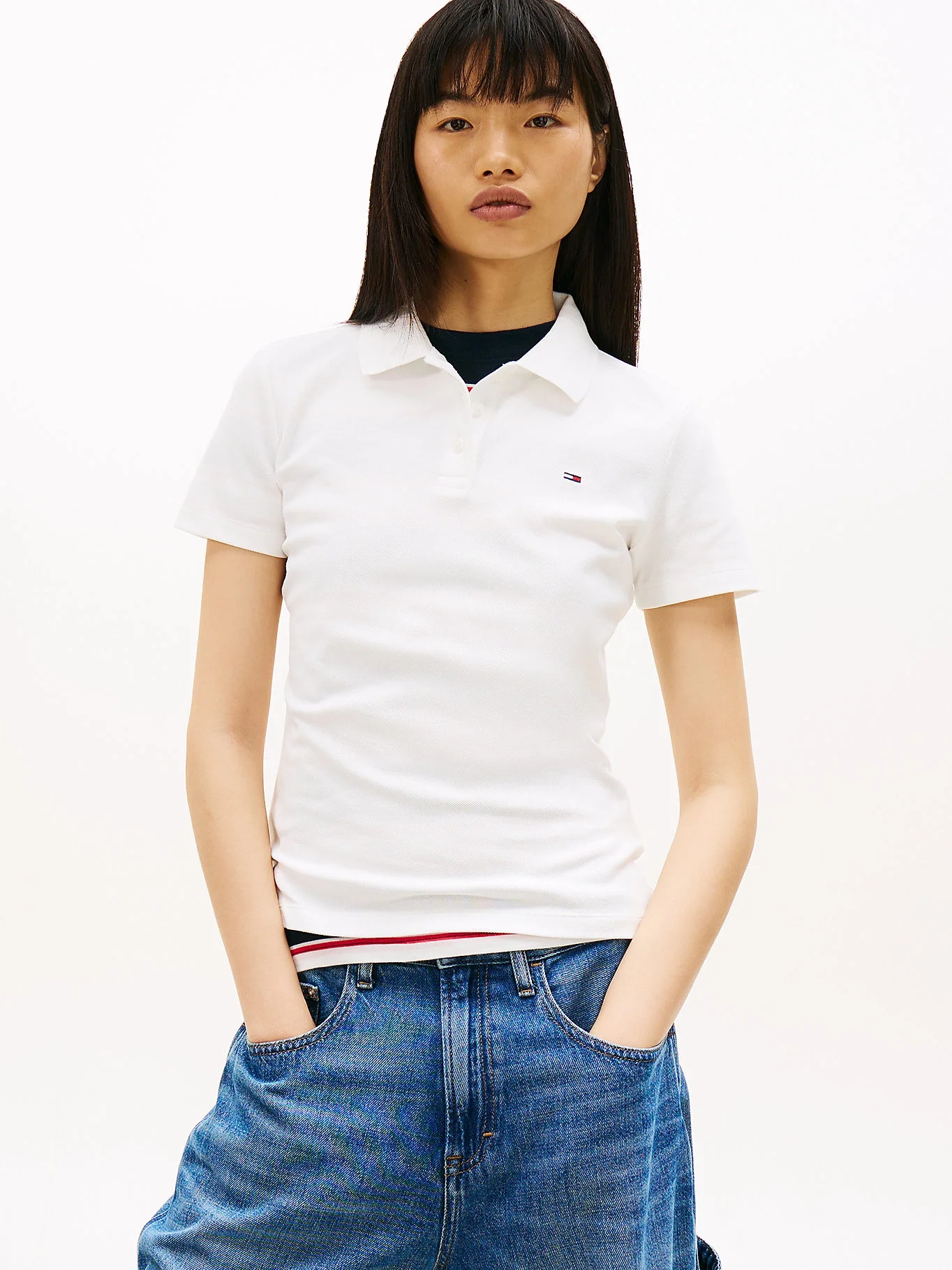 Tommy Hilfiger TJW Dar Kesim Essential Polo Yakalı Kısa Kollu Kadın Beyaz Polo T-shirt DW0DW20160YBL, klasik Amerikan tarzını Tommy Jeans’in modern ve dinamik çizgileriyle birleştiren vazgeçilmez bir parçadır. Polo yakanın prestijli duruşunu "slim fit" kesimin zarafetiyle buluşturan bu model, sportif şıklığı günlük stilinize taşır. Bu orijinal ürün, faturalı olarak Docca Collection güvencesiyle sunulmaktadır.
