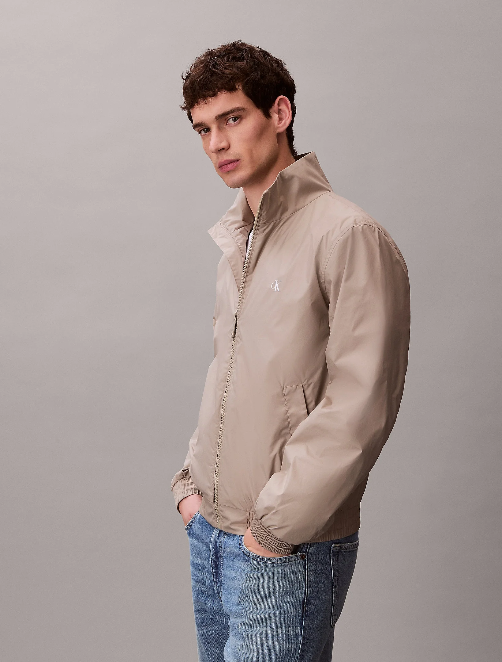 Calvin Klein Uzun Kollu Dolgusuz Naylon Harrington Erkek Kahve Ceket LV04RF520G-RAK