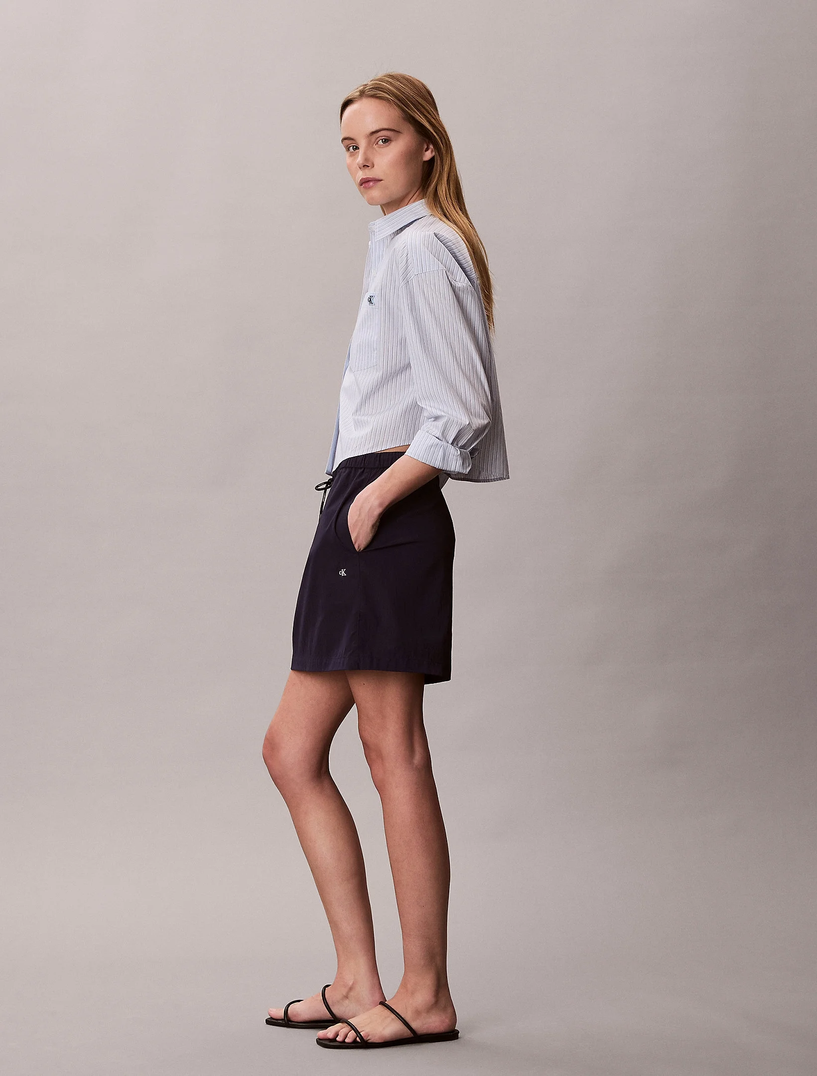 Calvin Klein İpliği Boyalı Pamuklu Poplin Kısa Kesim Kadın Mavi Gömlek LV047F105G-C1O