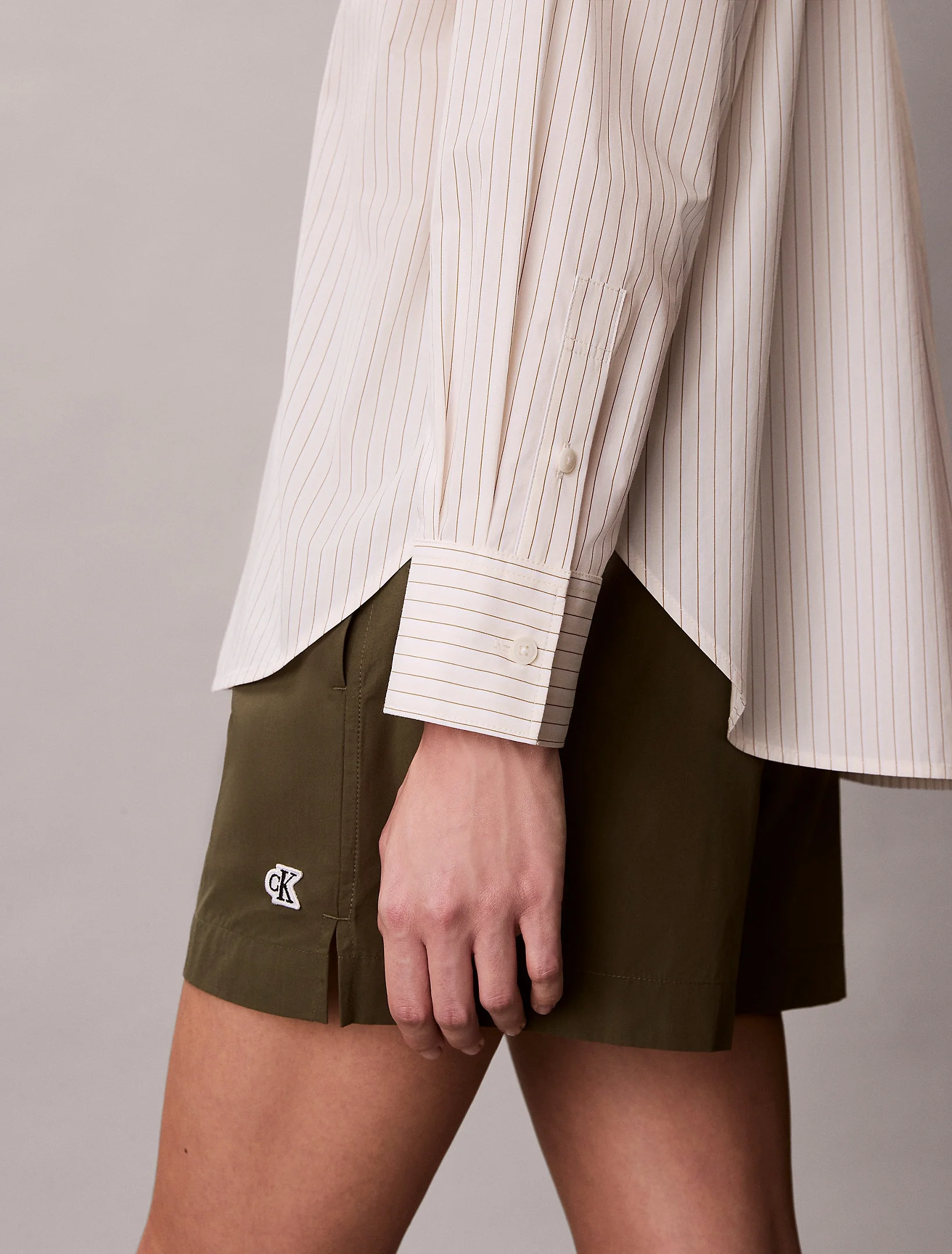 Calvin Klein İpliği Boyalı Pamuklu Poplin Rahat Kesim Kadın Beyaz Gömlek LV047F103G-F7J
