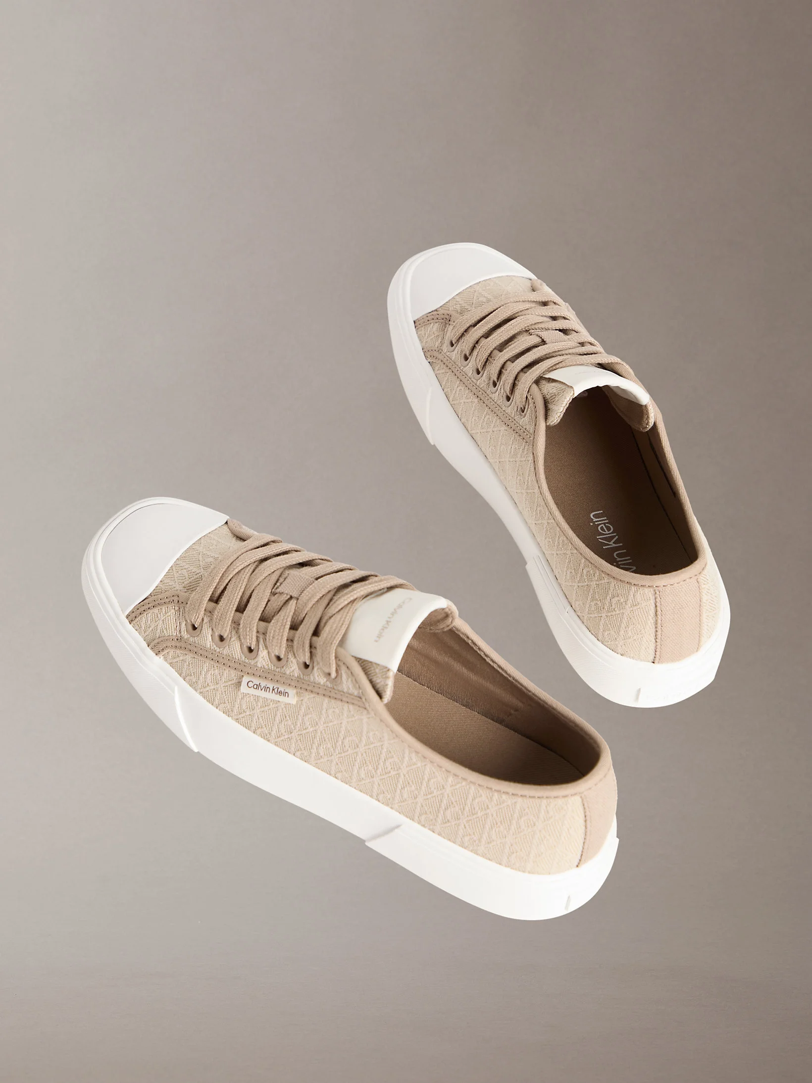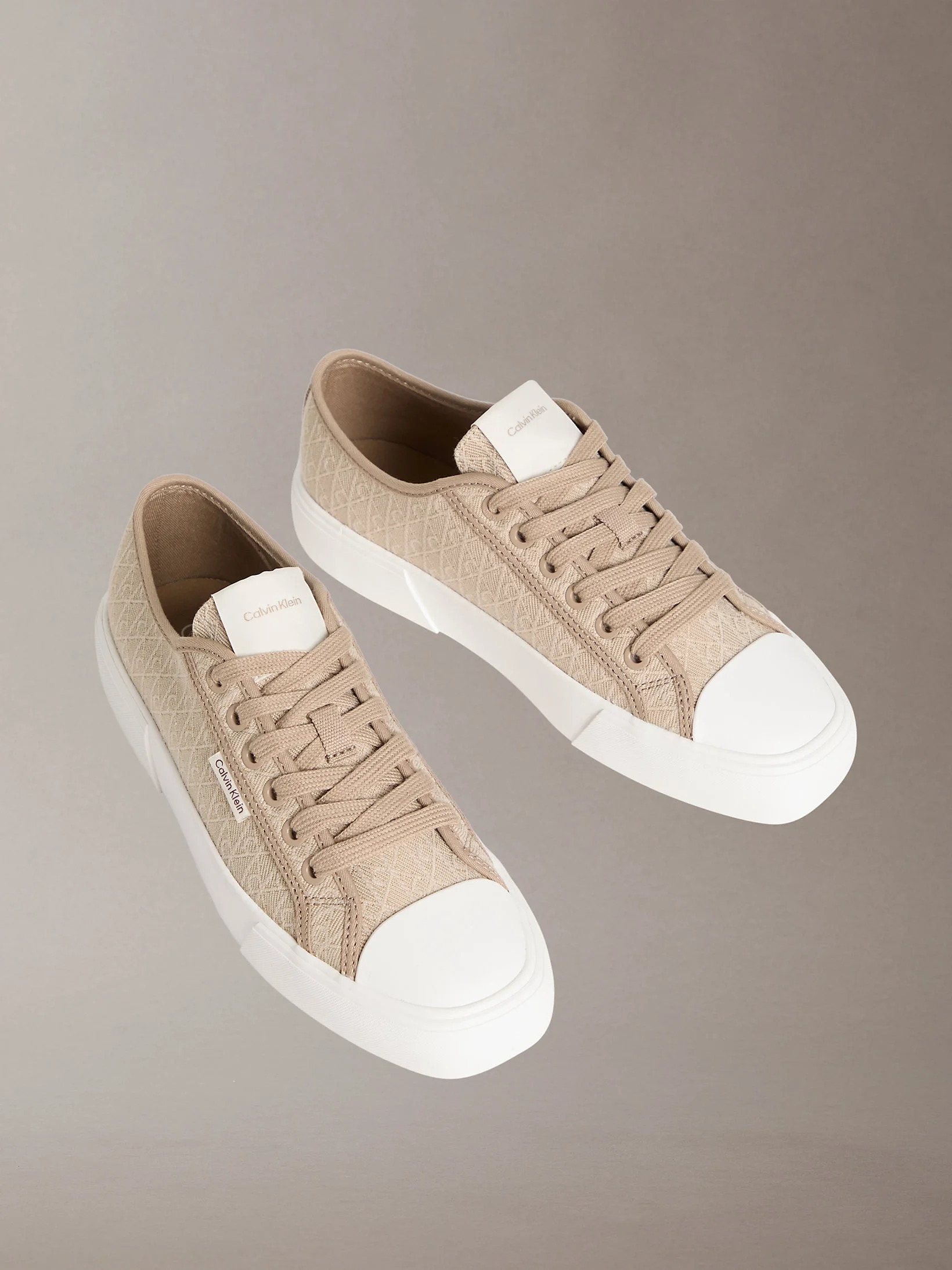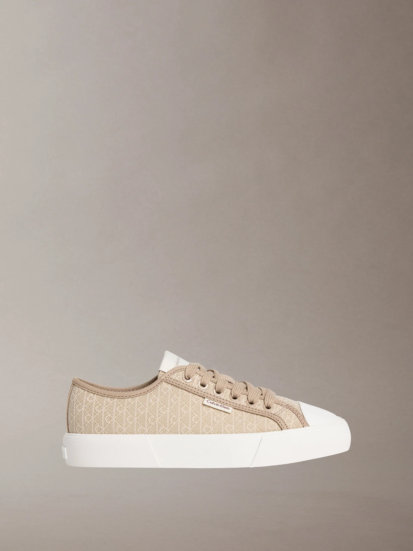 Calvin Klein Vulkanize Düşük Bilekli Bağcıklı Tamamı Baskılı Kanvas Kadın Bej Sneaker HW0HW03142-A04