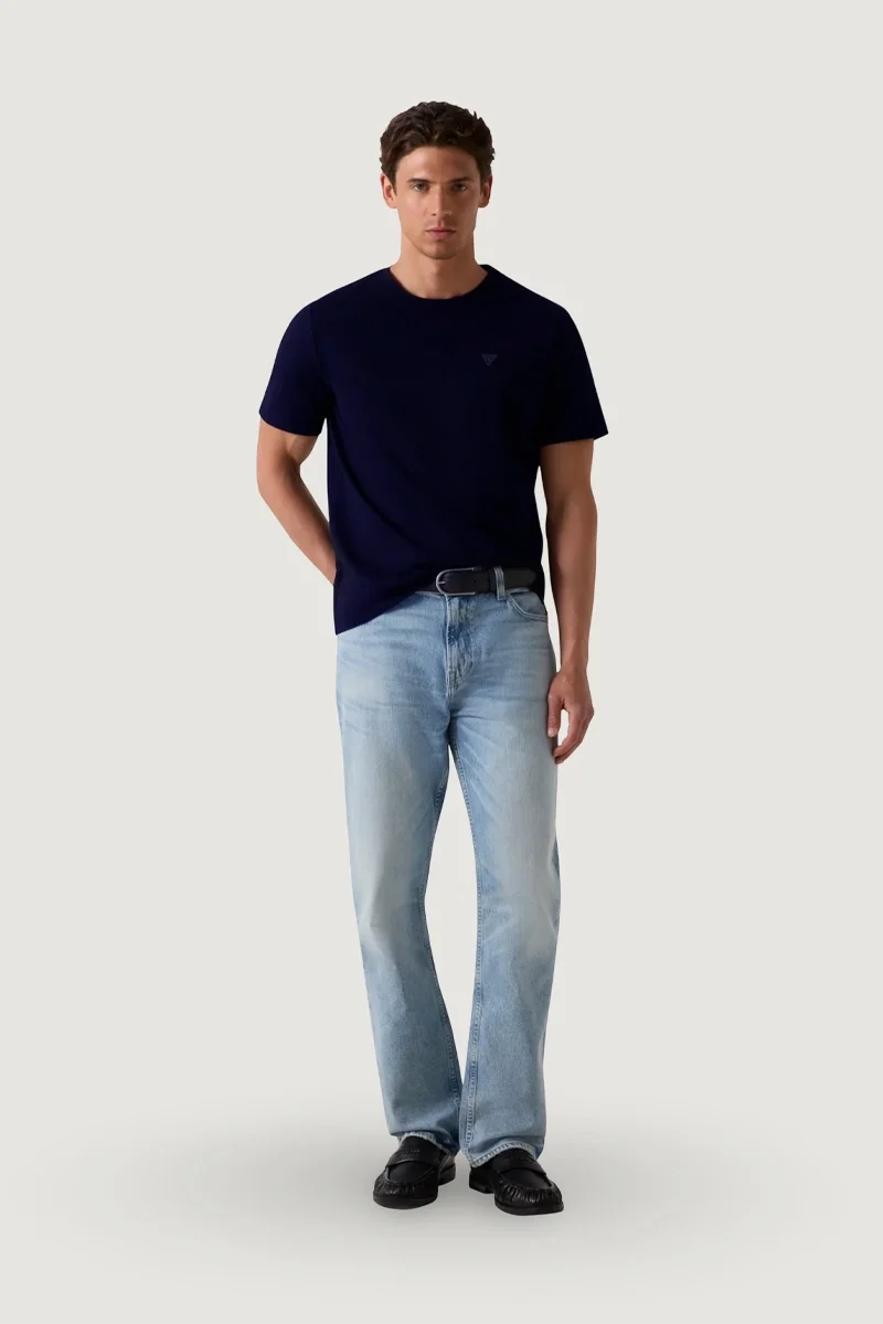 Guess Bisiklet Yaka Kısa Kollu Küçük Yamalı Pamuklu Modal Erkek Lacivert T-shirt M6GI21K3053-G7V2