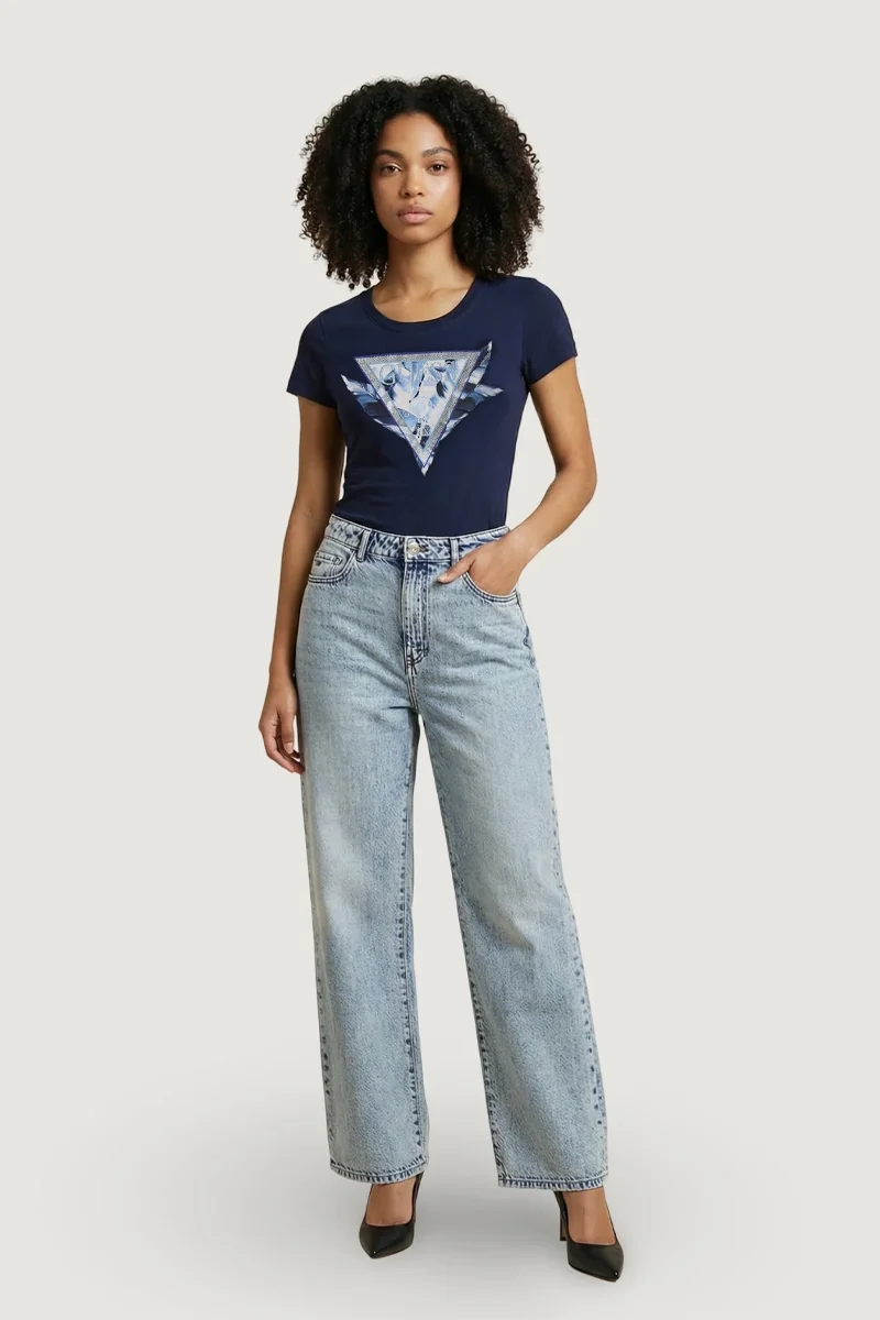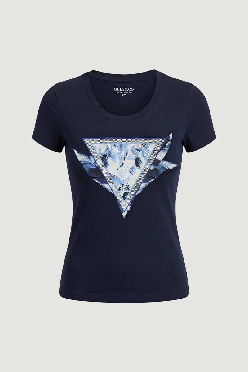 Guess Kısa Kollu Bisiklet Yaka Tüylü Üçgen Kadın Lacivert T-shirt W6GI11K3026-G7P1