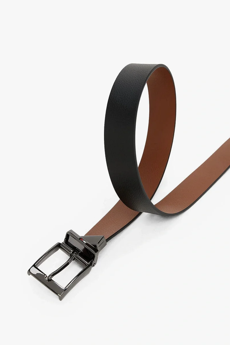 Tommy Hilfiger Erkek Çift Taraflı Kare Tokalı Deri Kemer