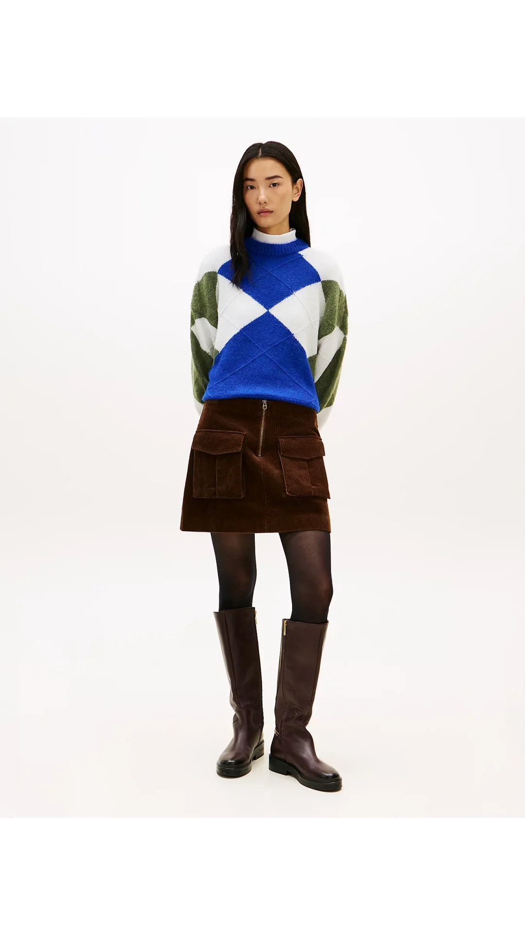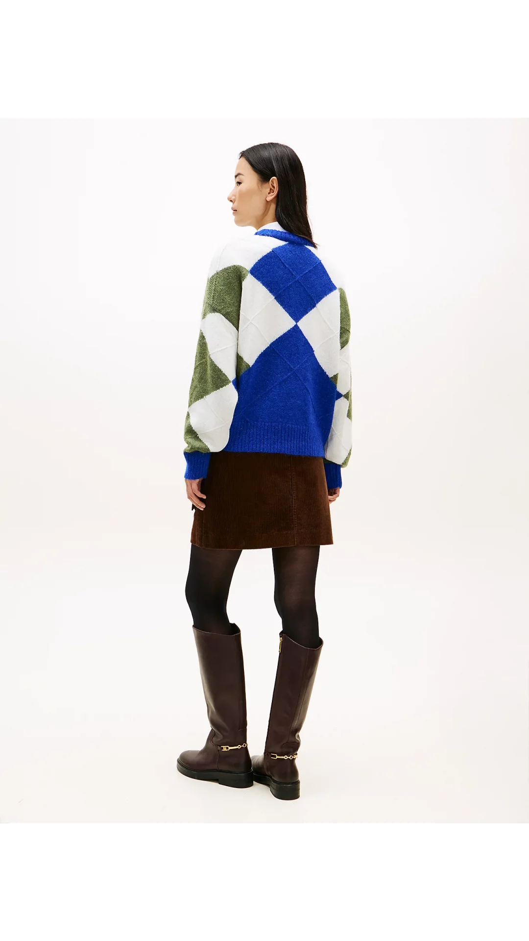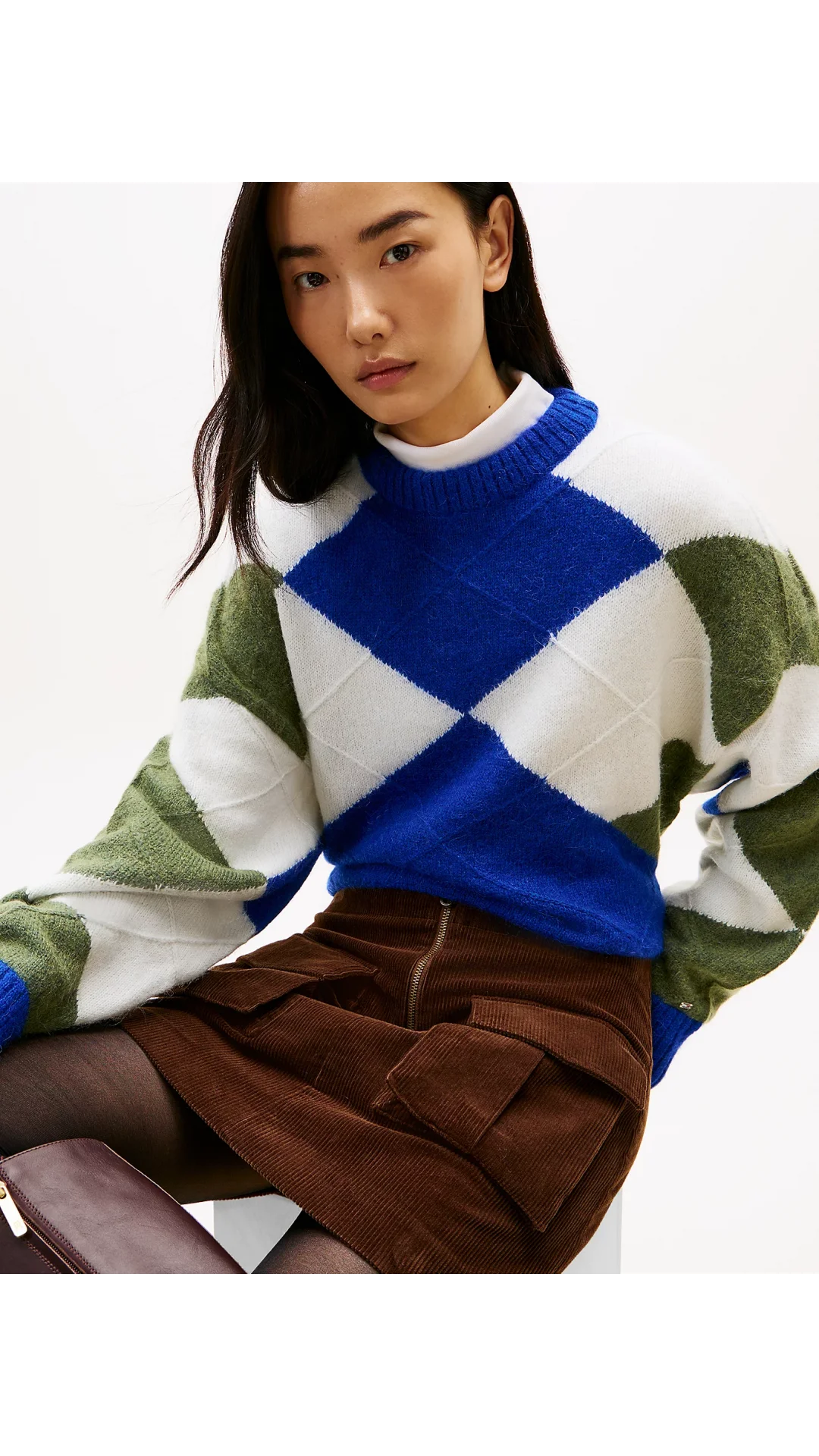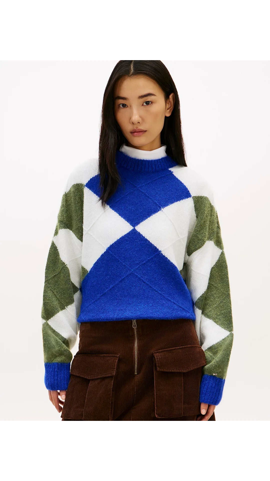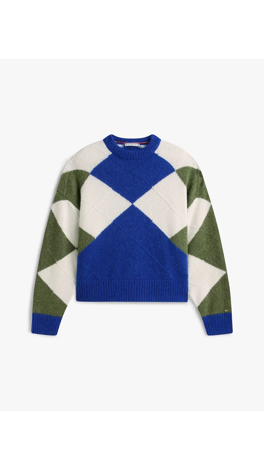 Tommy Hilfiger Alpaka Karışımlı Baklava Desenli Bisiklet Yaka Uzun Kollu Kadın Mavi Kazak WW0WW474640ZU