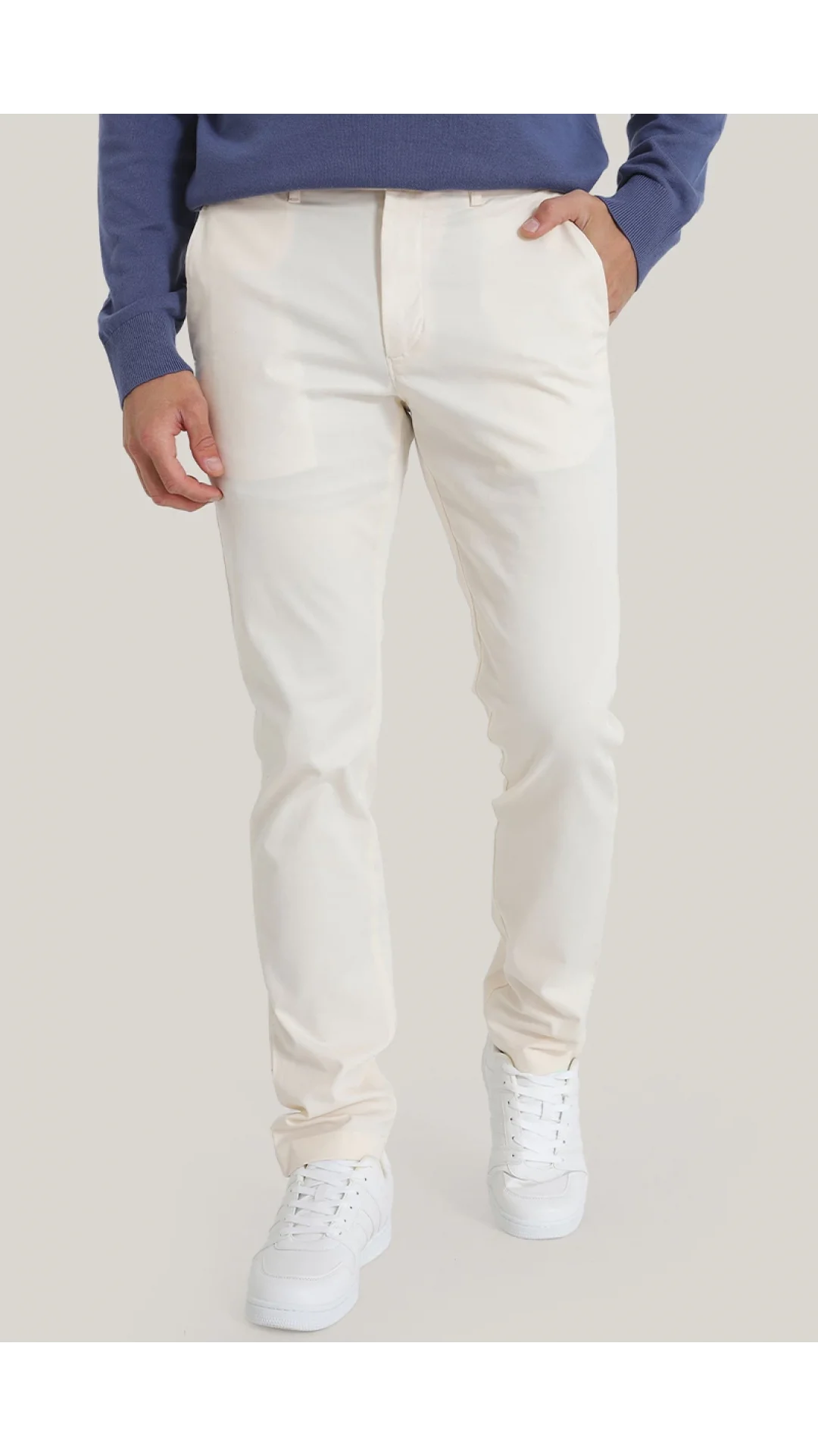 Bu chinos, resmi görünümünüze hoş bir takım elbise görünümü katan düz bacaklı, zarif, dar kesim bir tasarıma sahiptir.