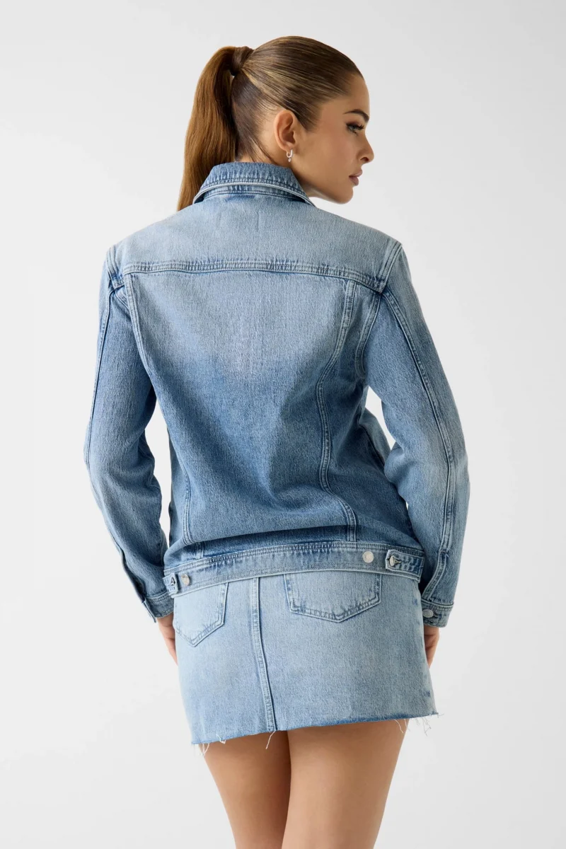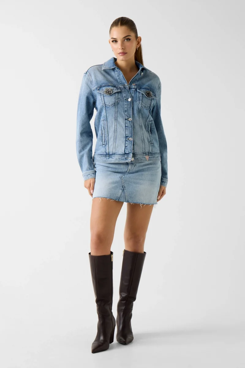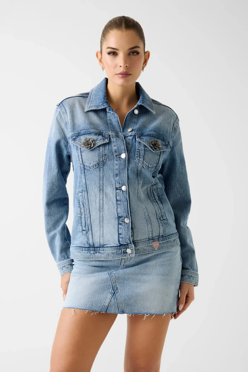 Bu dar kesim ceket ile görünümünüzü katmanlandırın. Kolay giyilebilen esnek pamuklu denim kumaştan üretilen ceket, dikkat çekici markalı düğmelerle tamamlanmıştır.