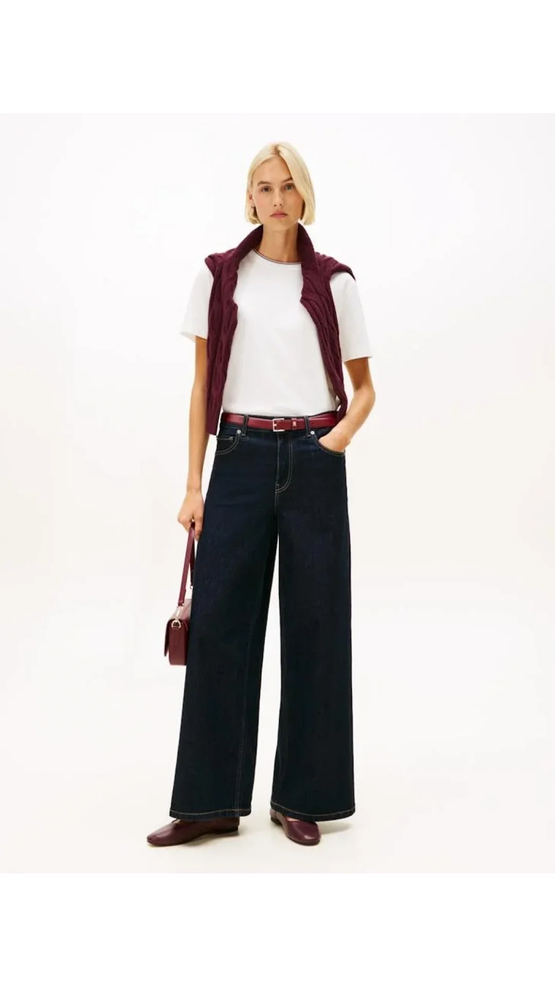 Tommy Hilfiger İkonik Şeritli Pike Bisiklet Yaka Kısa Kollu Kadın Beyaz T-shirt WW0WW47310YBL