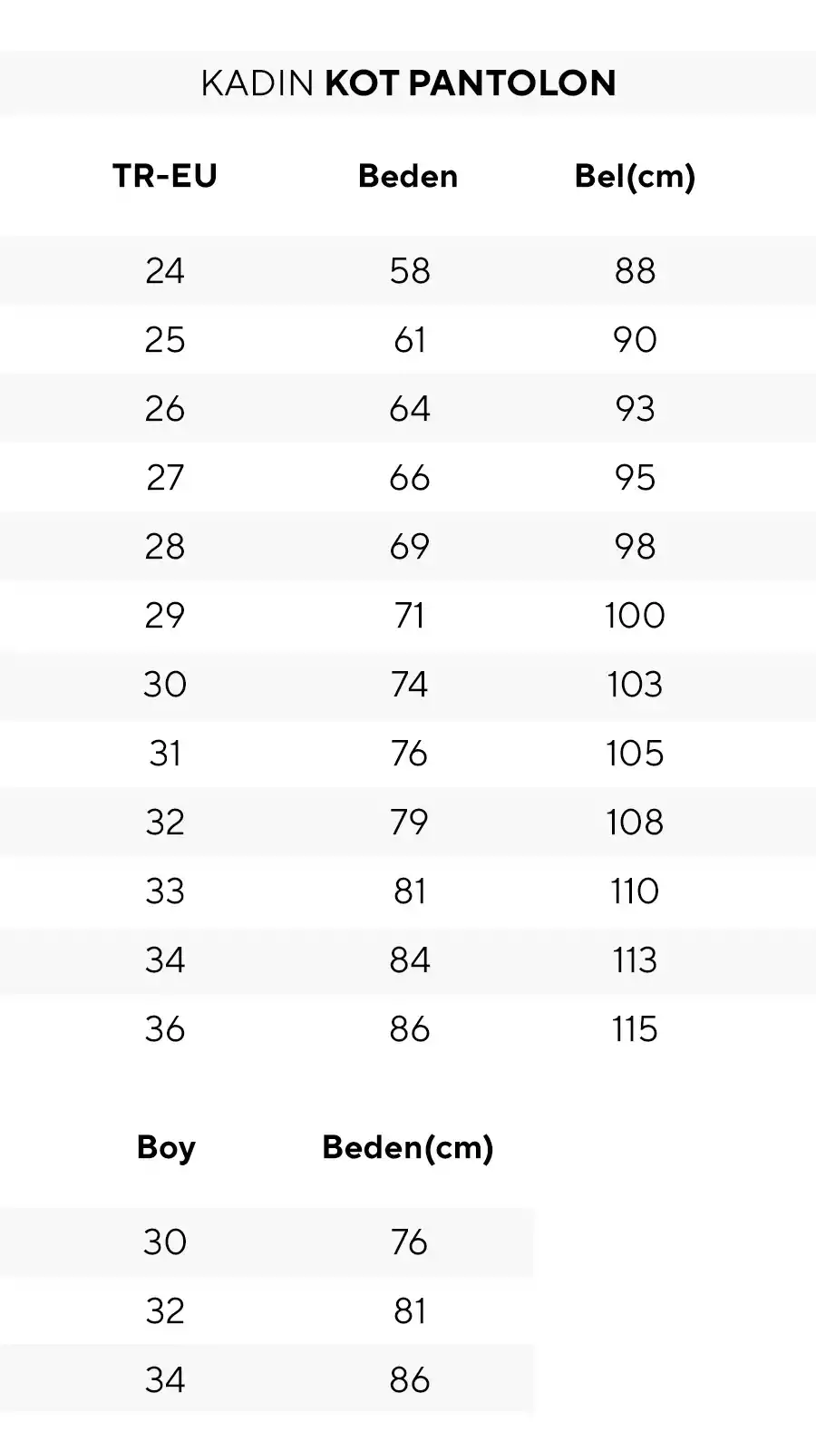 Modelimiz 1,76 m boyunda ve 28/32 beden giyiyor