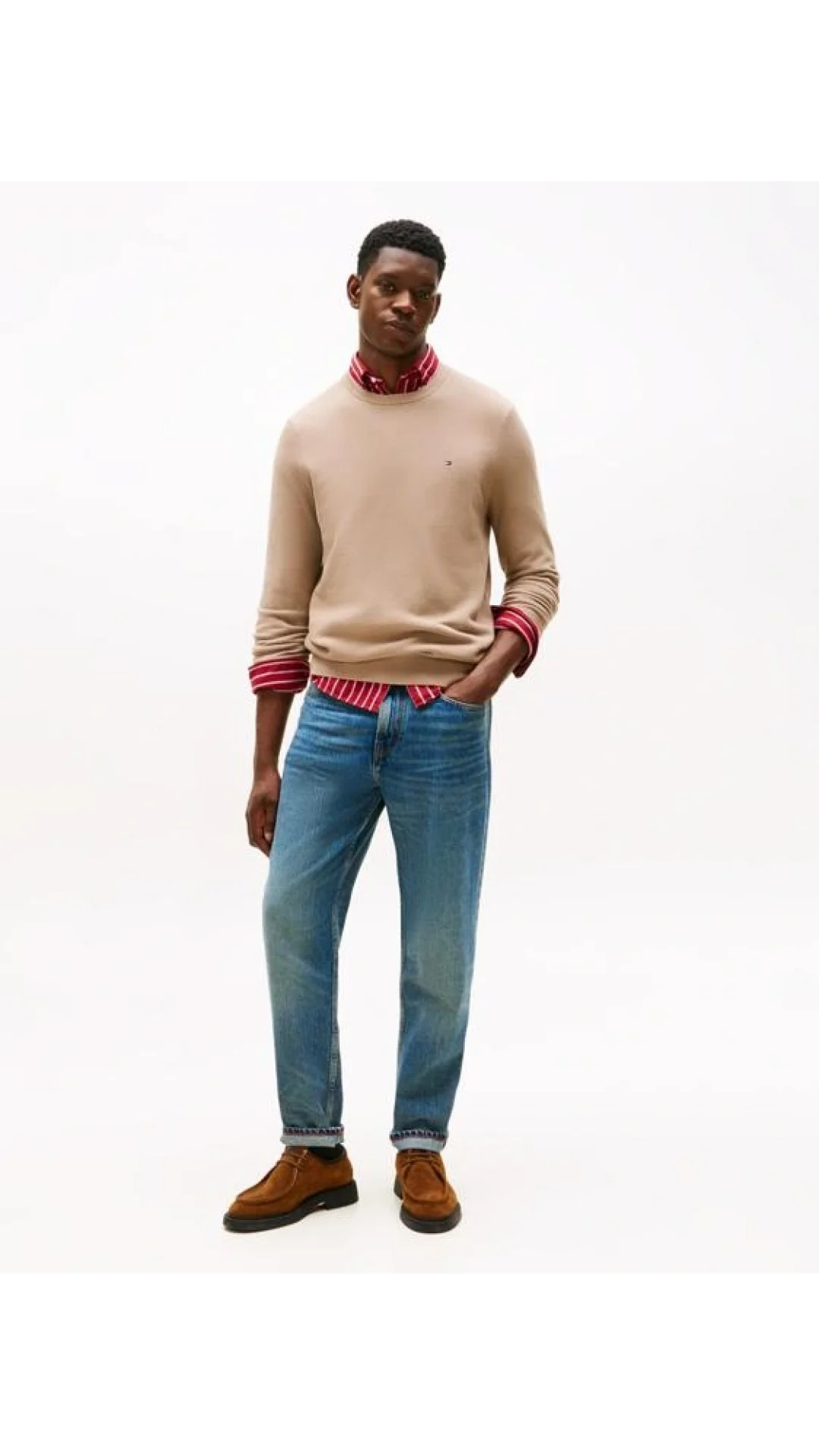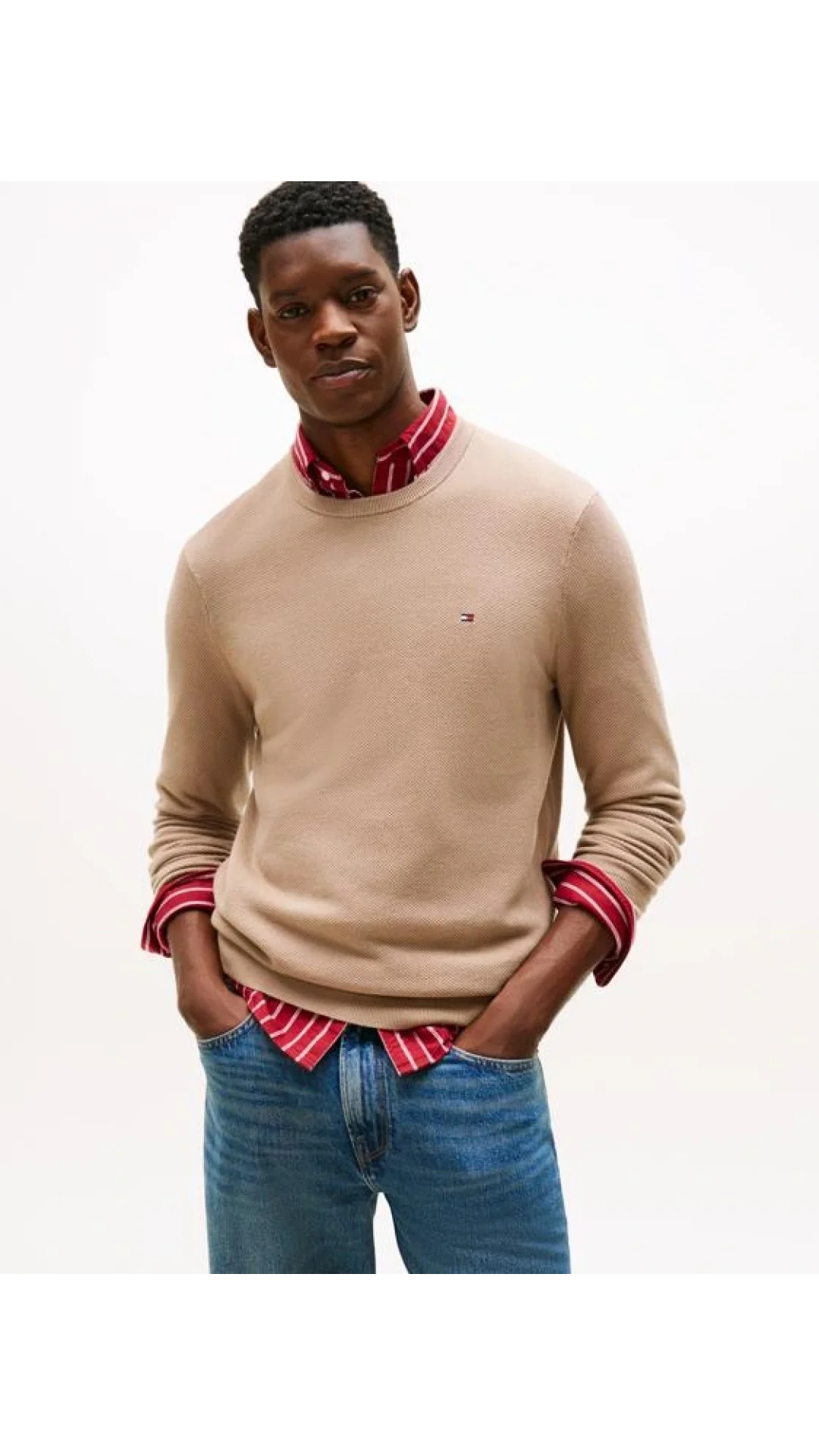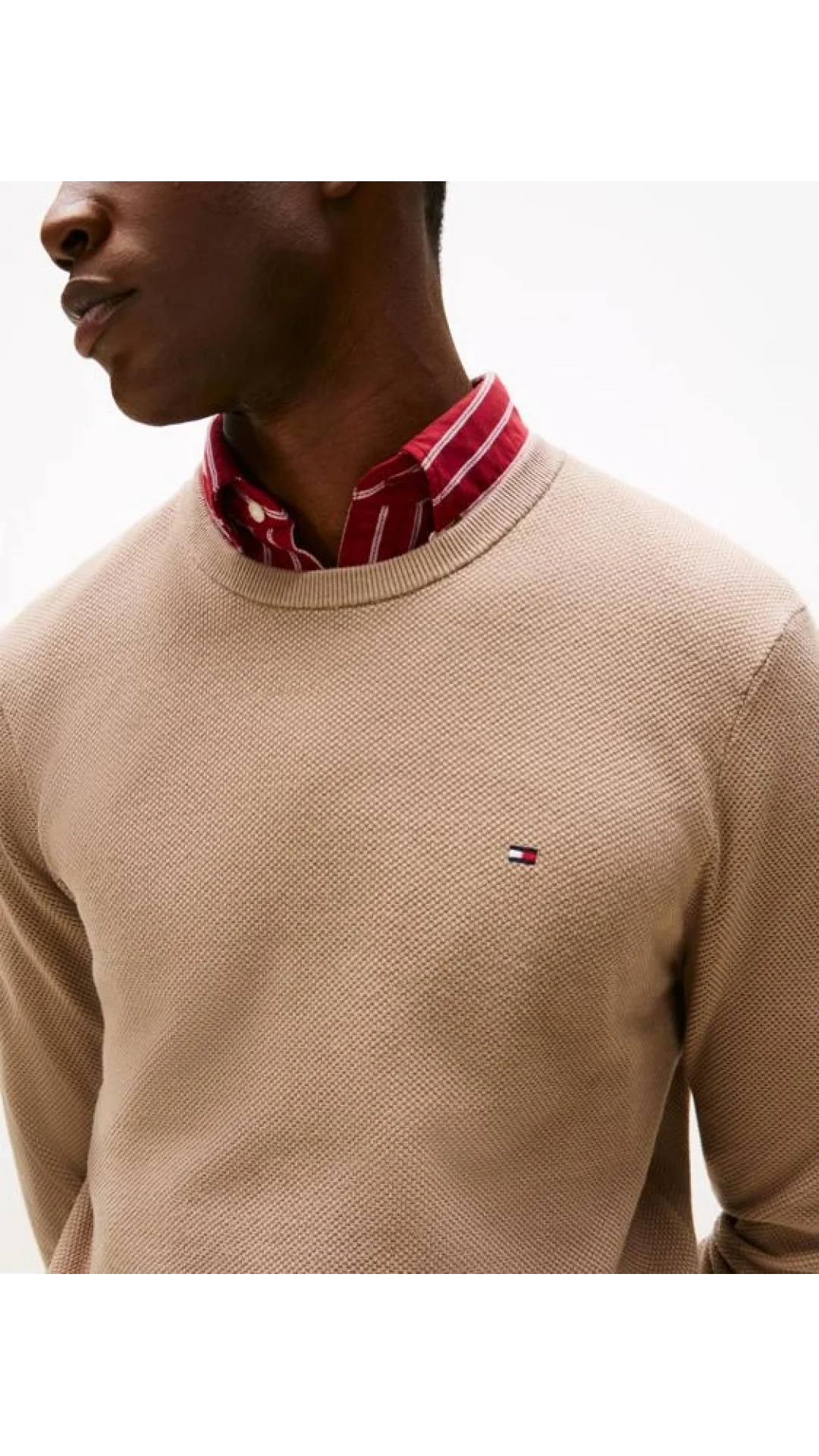 Tommy Hilfiger Klasik Dokulu Bisiklet Yaka Erkek Bej Kazak MW0MW36347AFE