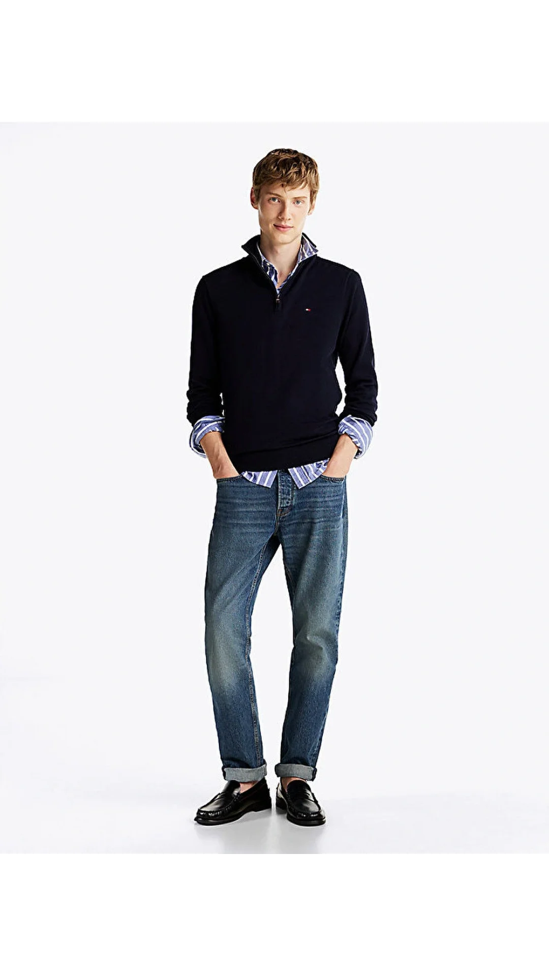 Tommy Hilfiger imzalı bu mavi kazak, klasik pamuklu kumaşı ve fermuarlı balıkçı yaka tasarımıyla hem rahat hem de modern bir görünüm sunar. Günlük kullanımda konfor sağlar ve kombinlerinize şıklık katar.