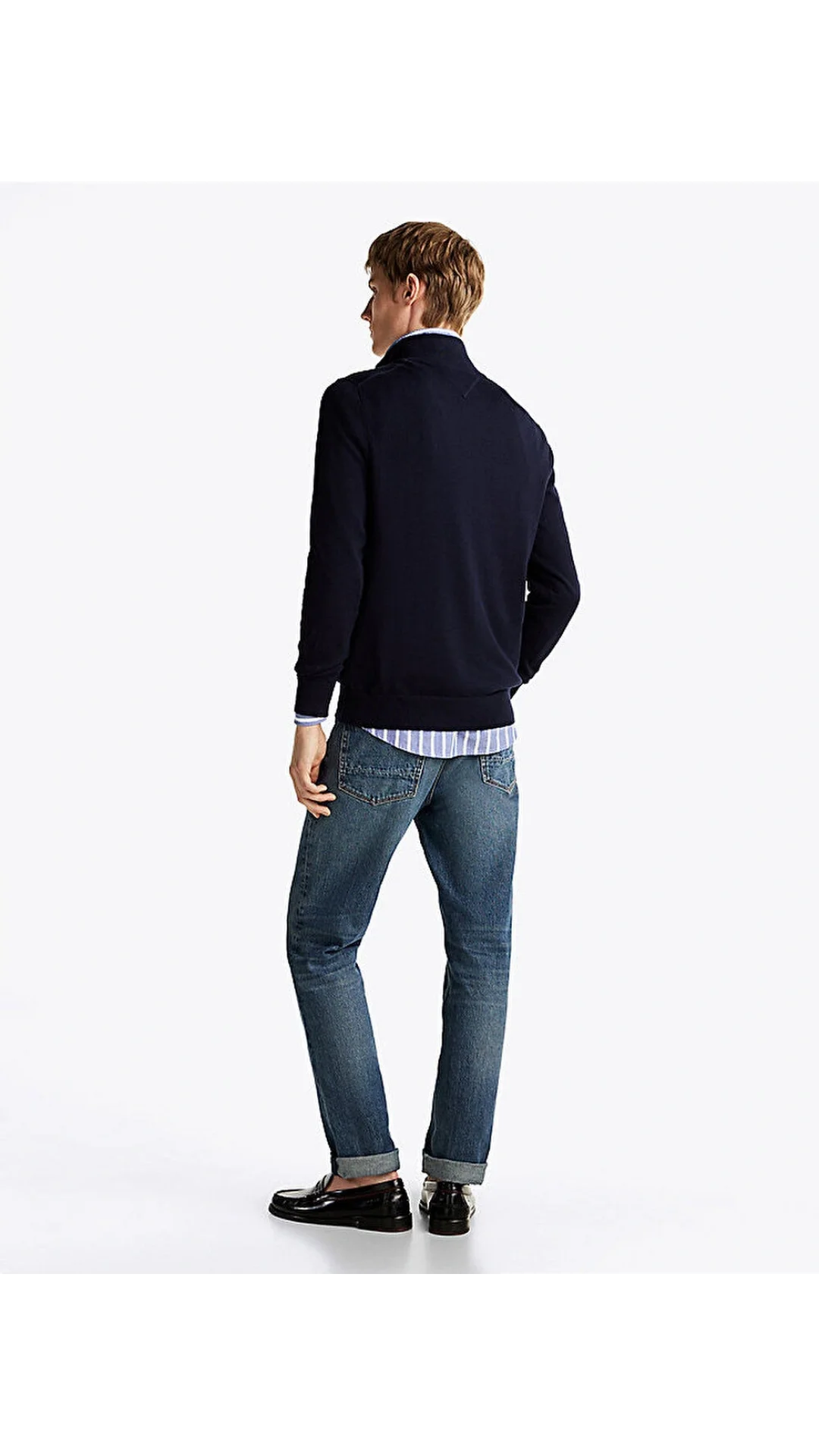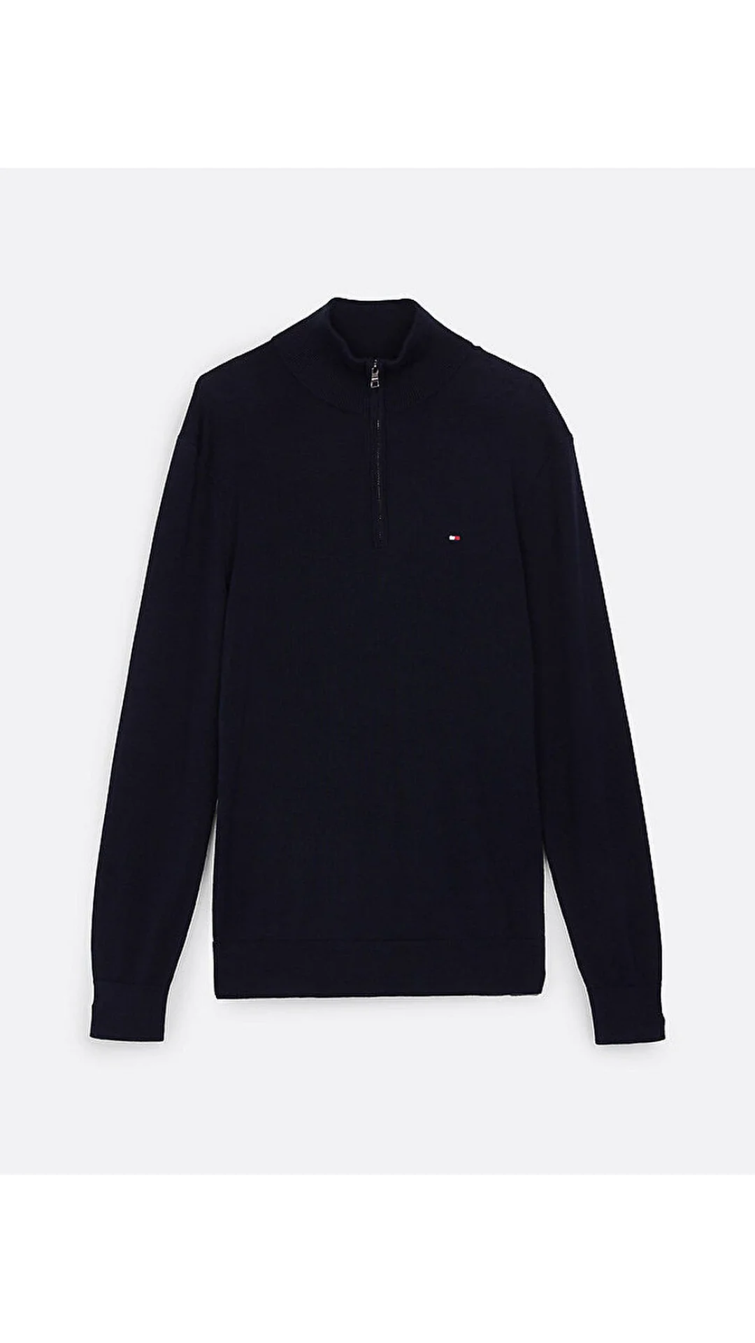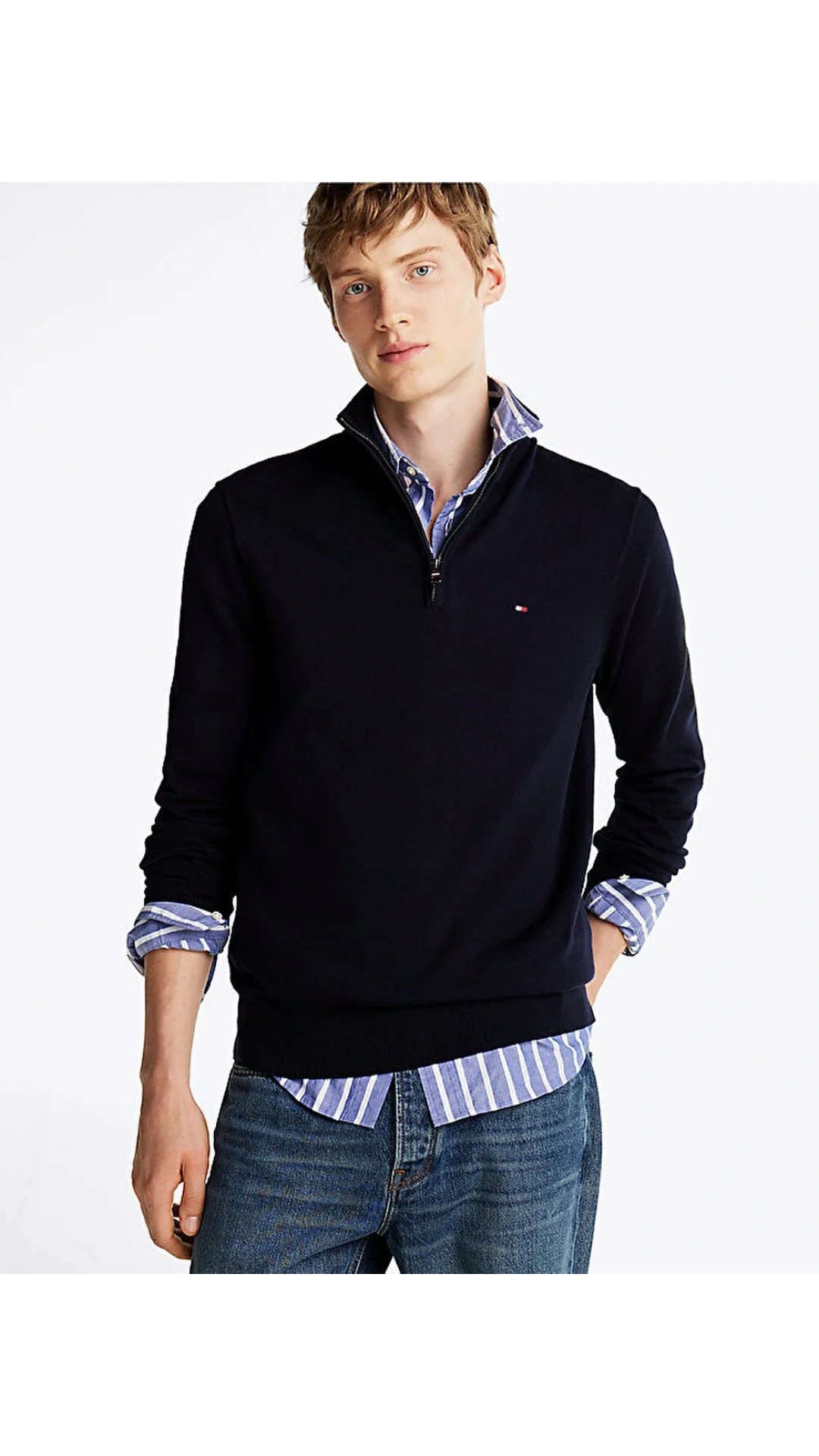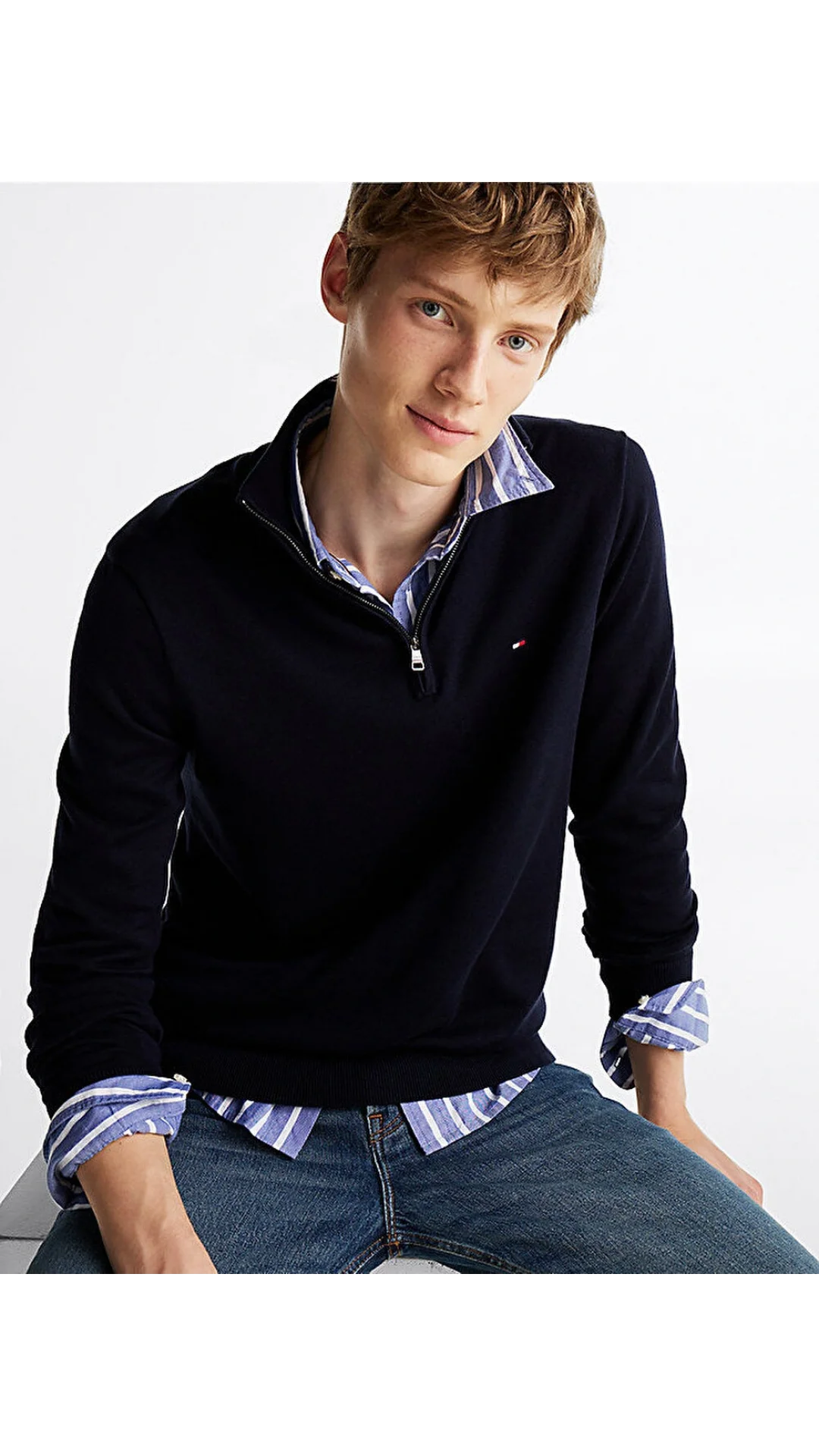 Tommy Hilfiger Klasik Pamuklu Fermuarlı Balıkçı Yaka Erkek Mavi Kazak MW0MW37331DW5
