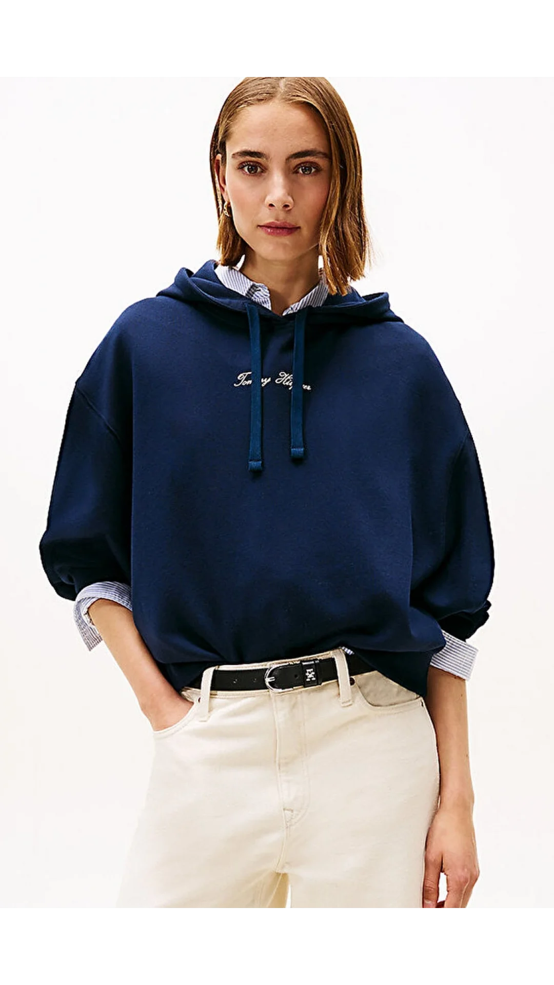 Tommy Hilfiger Klasik Yazı Baskılı Penye Kapüşonlu Kadın Kazak WW0WW48270C1G