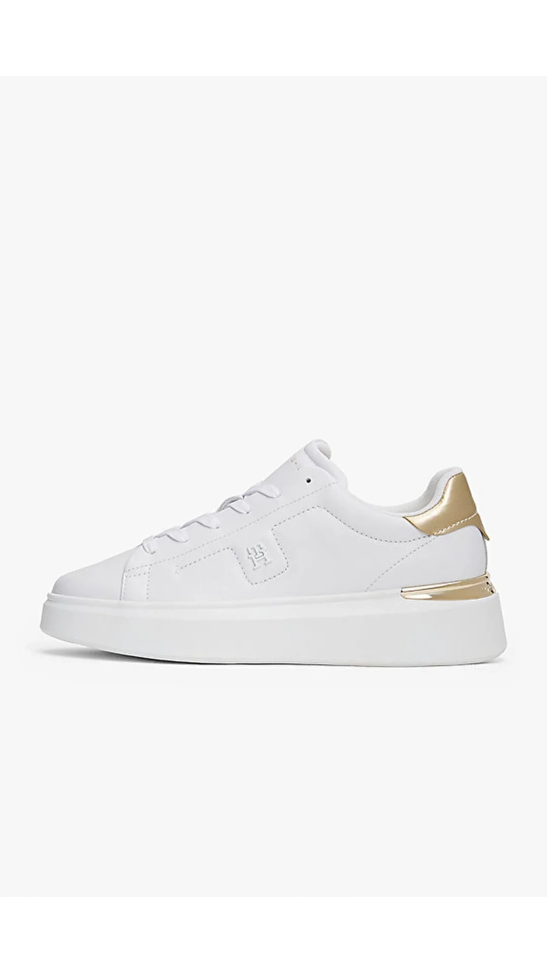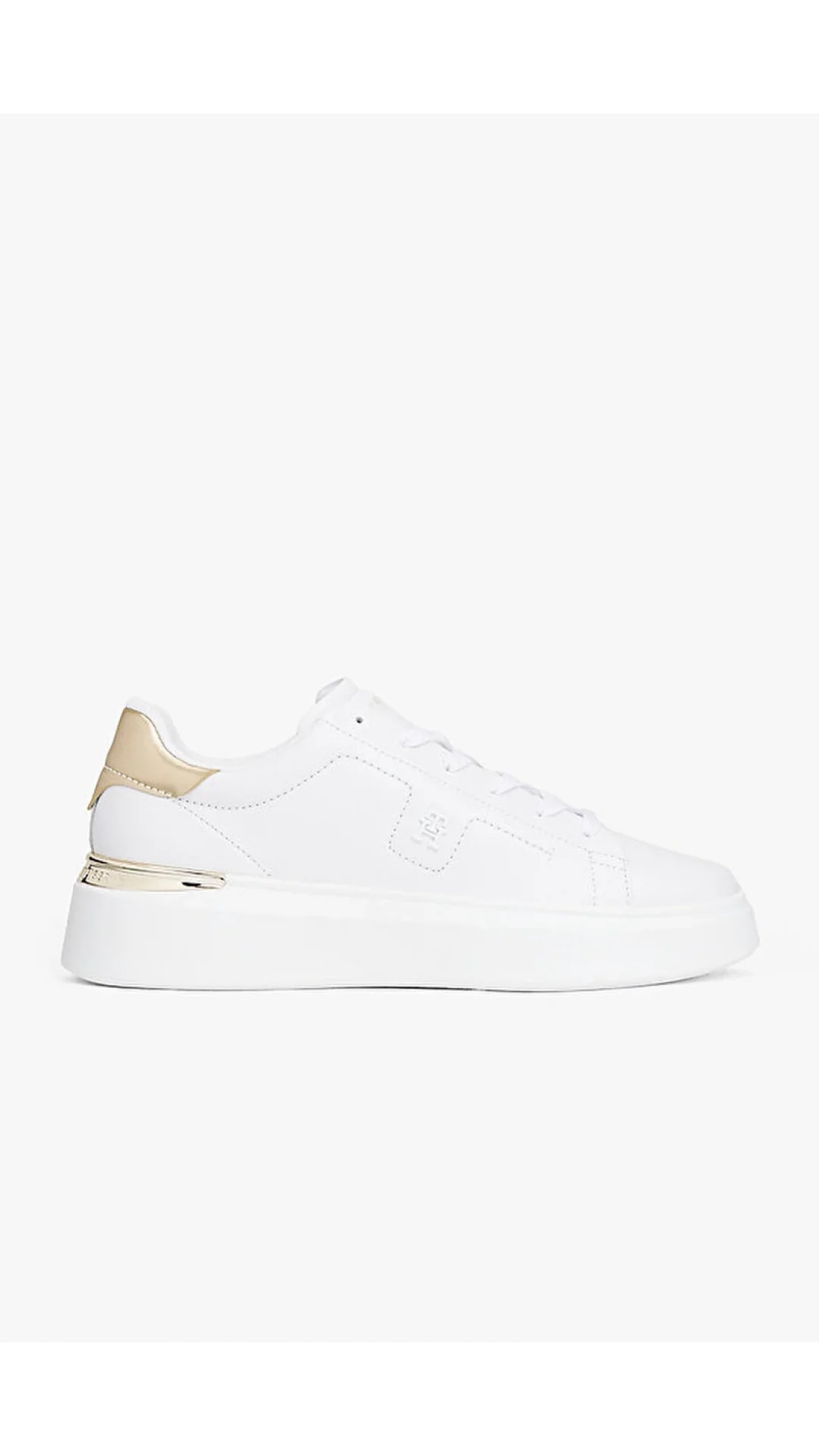 Tommy Hilfiger platform sneaker, modern tasarımı ve rahat tabanı ile gün boyu konfor sağlar. Altın rengi detayı, tarzınıza şık ve dikkat çekici bir dokunuş katar.