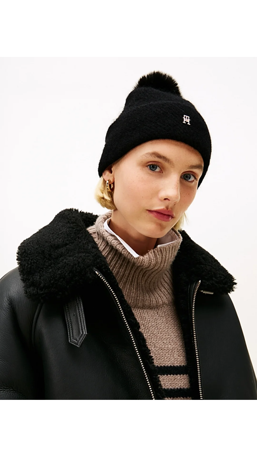 Tommy Hilfiger TH Ponponlu Kadın Siyah Bere AW0AW18178BDS