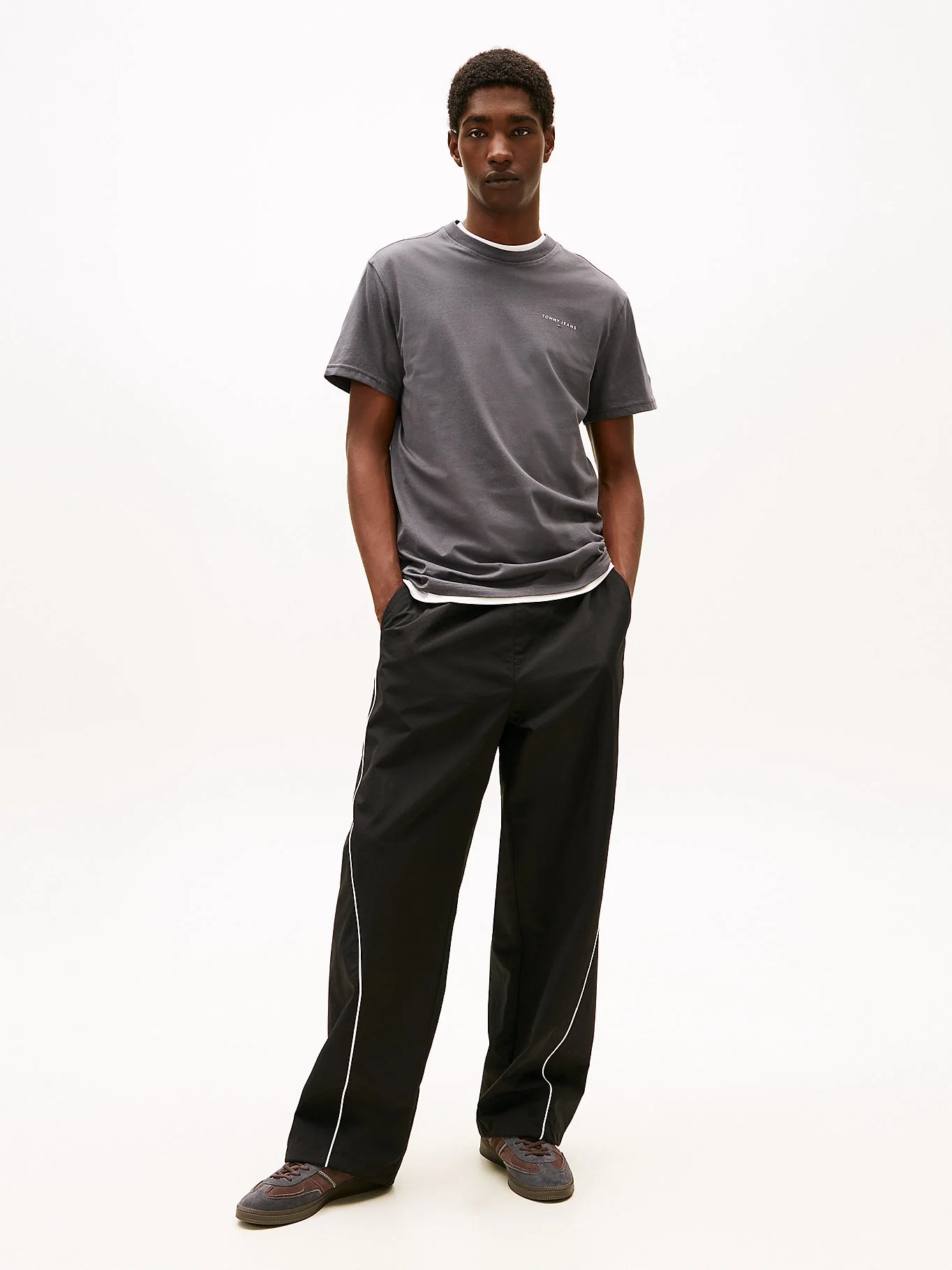 - Çok Yönlü Gri Tonu: Denim pantolonlar, eşofman altları veya şortlarla kolayca kombinlenebilen, her mevsime uygun gri renk paleti.