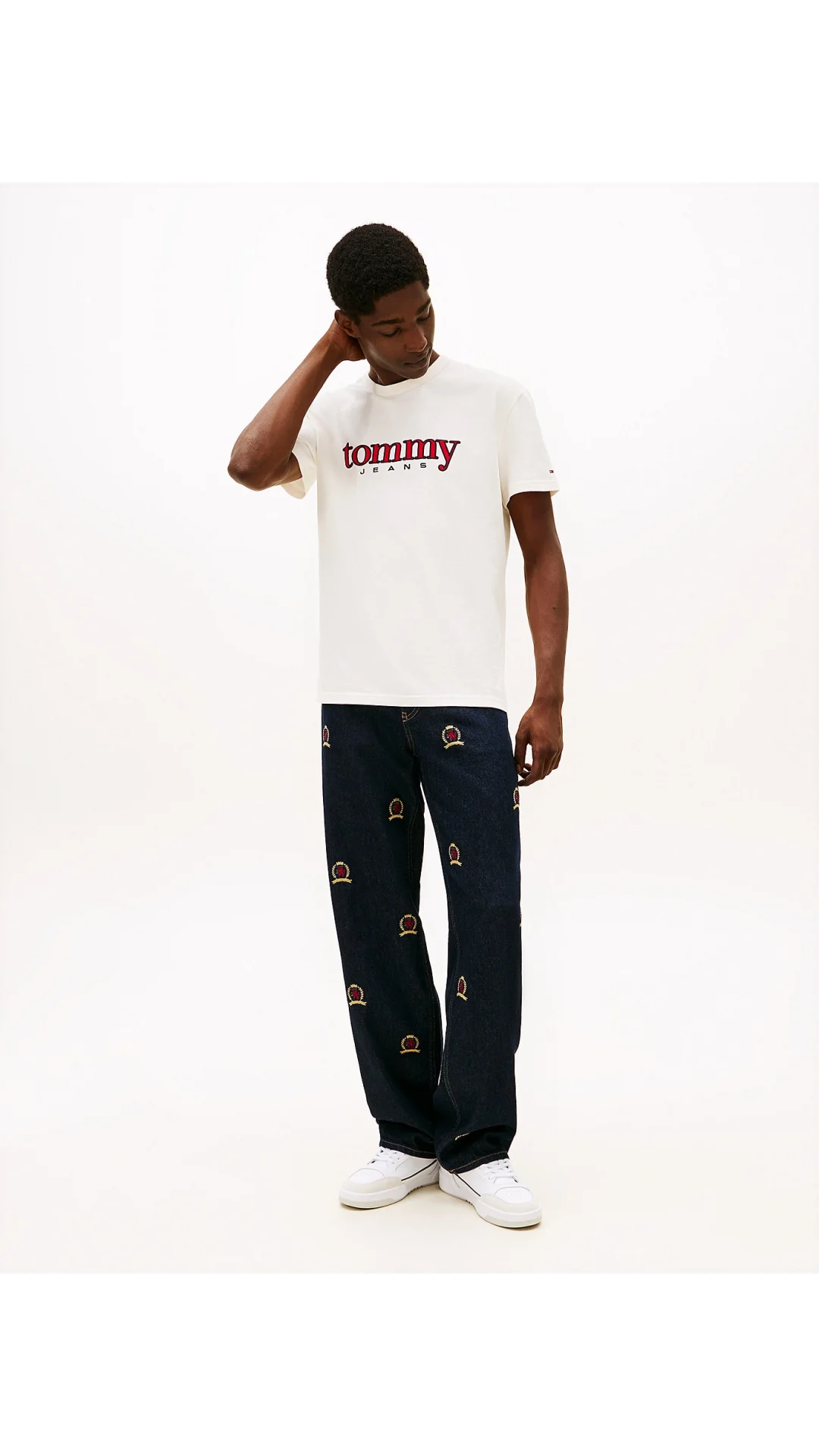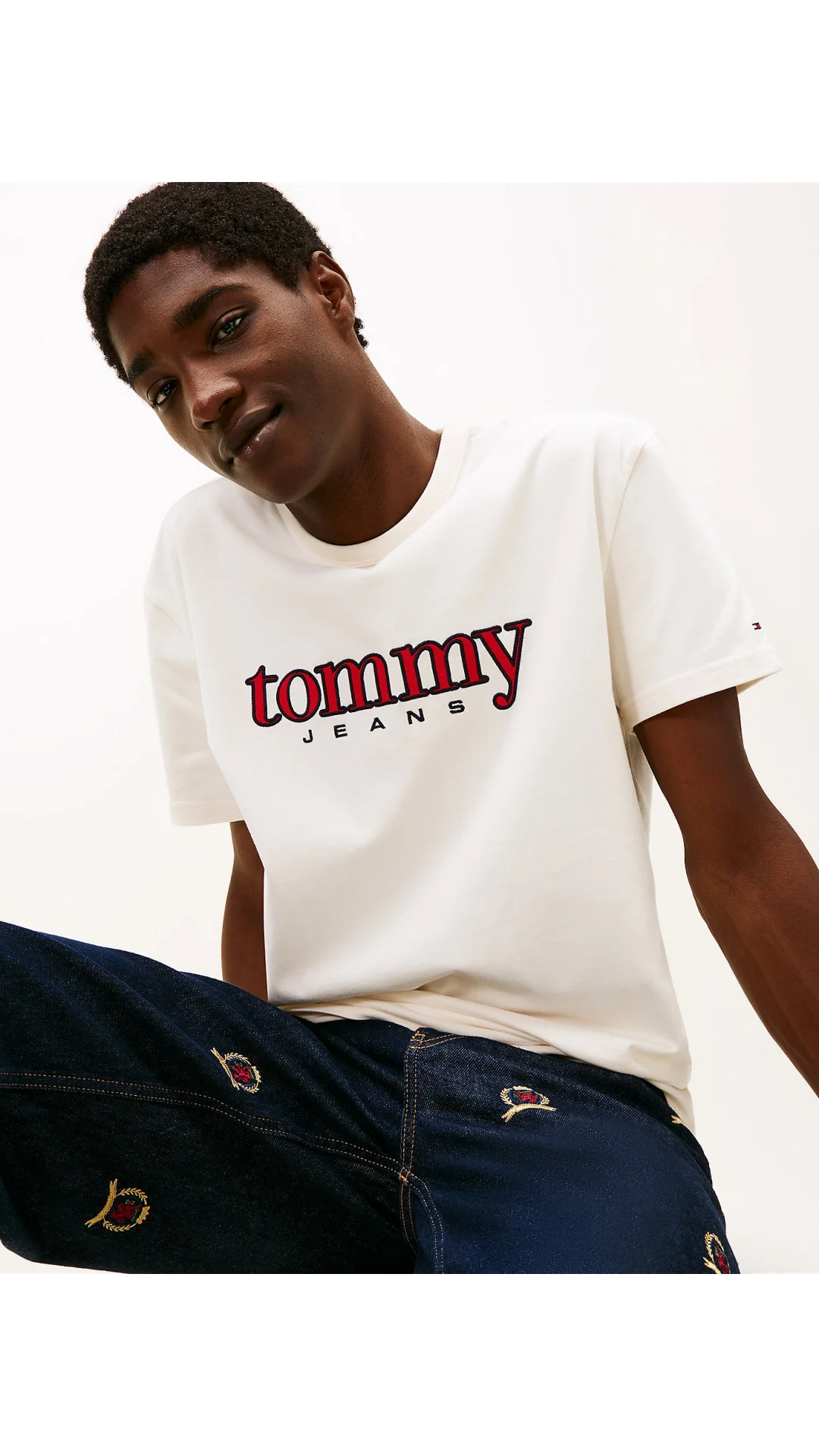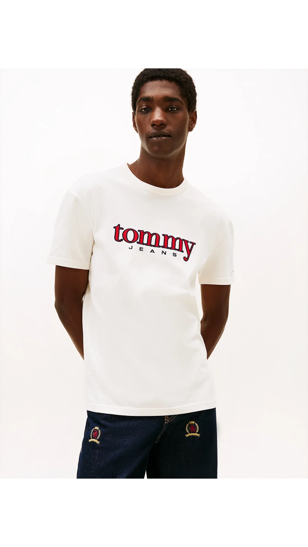 Tommy Hilfiger TJM Normal Kesim Aplikeli Grafik Baskılı Erkek Beyaz T-shirt DM0DM22719YBH