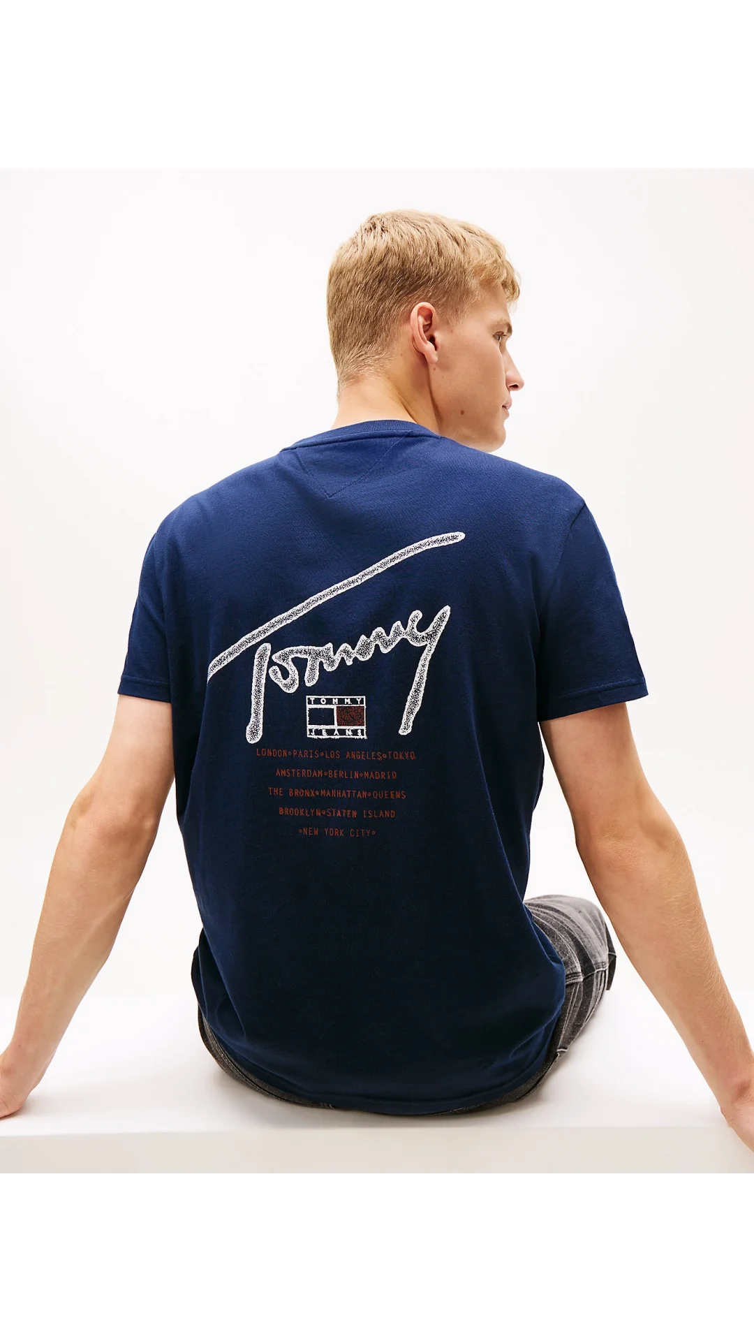 Tommy Hilfiger TJM Normal Kesim İmzalı Sırt Baskılı Erkek Mavi T-shirt DM0DM22320C1G
