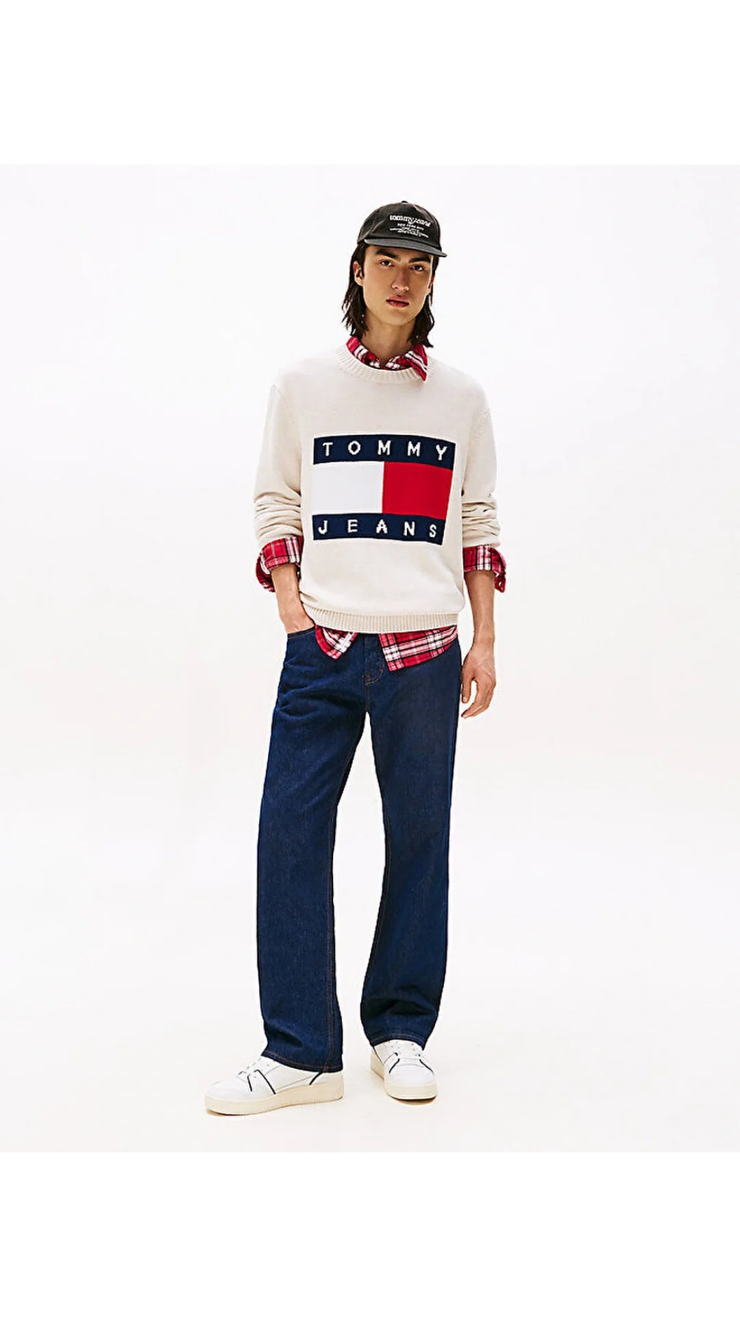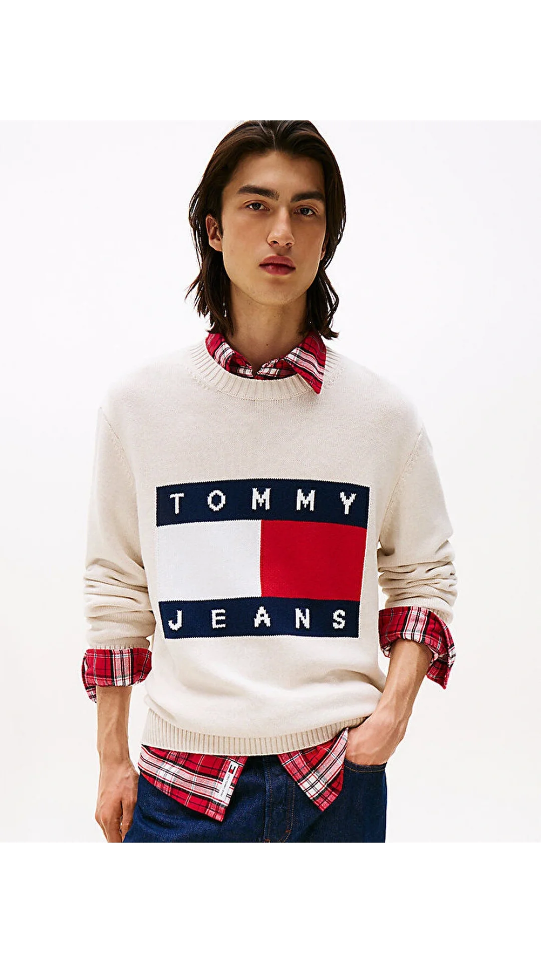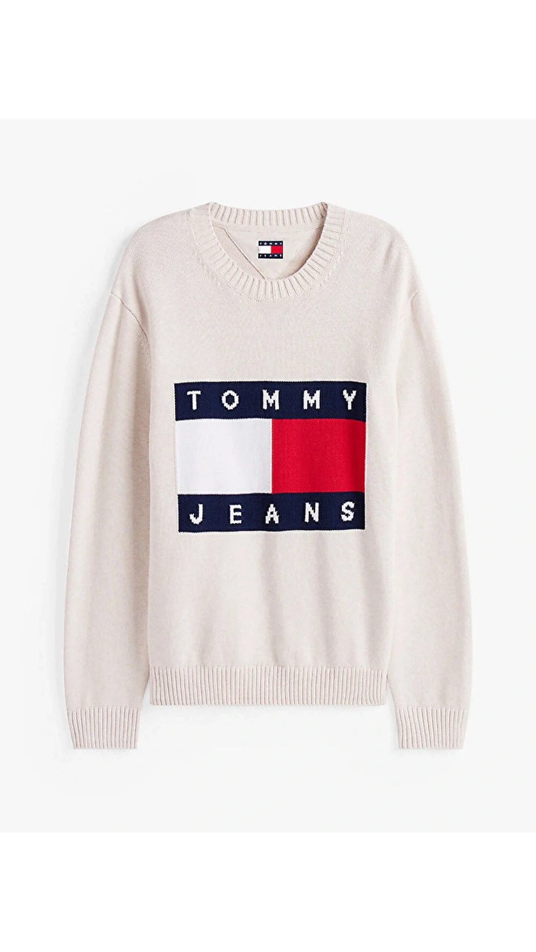 Tommy Hilfiger TJM Normal Kesim Melanj Bayrak Desenli Erkek Bej Kazak DM0DM22105AFN