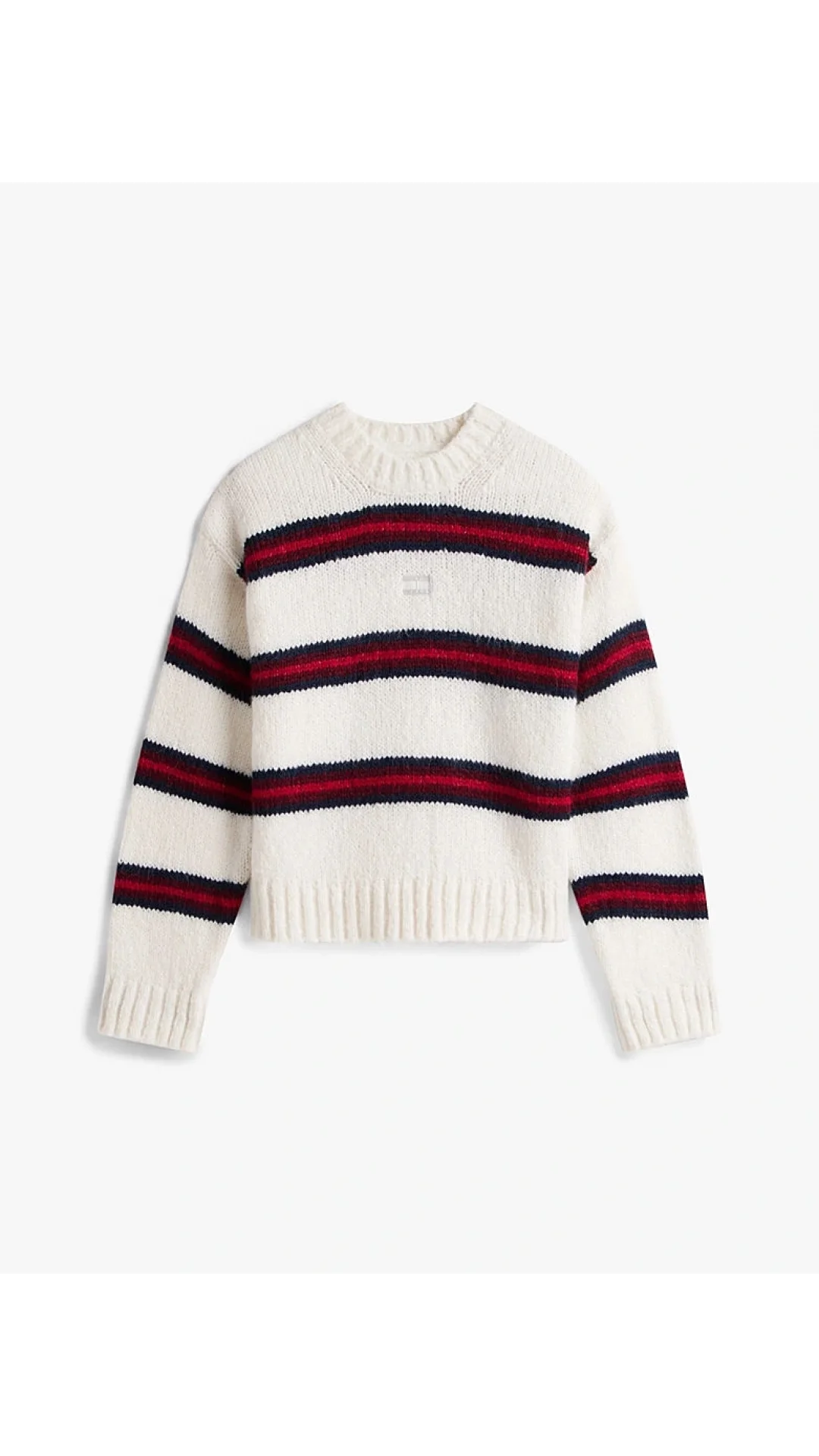Tommy Hilfiger TJW Armalı Çizgili Yumuşak Kadın Beyaz Kazak DW0DW21679YBH